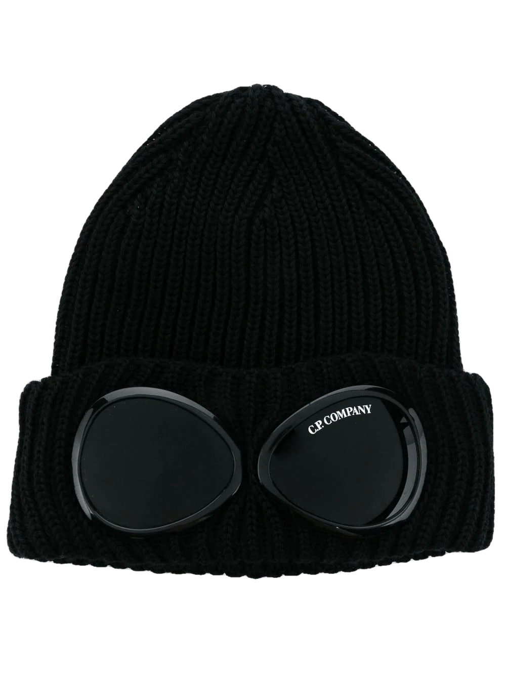 Ce bonnet tricoté dans une épaisse maille côtelée arbore les emblématiques lunettes C.P. Company sur le bord.