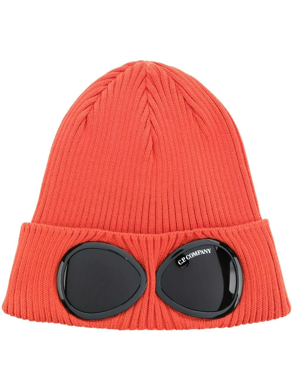 Ce bonnet tricoté dans une épaisse maille côtelée arbore les emblématiques lunettes C.P. Company sur le bord.