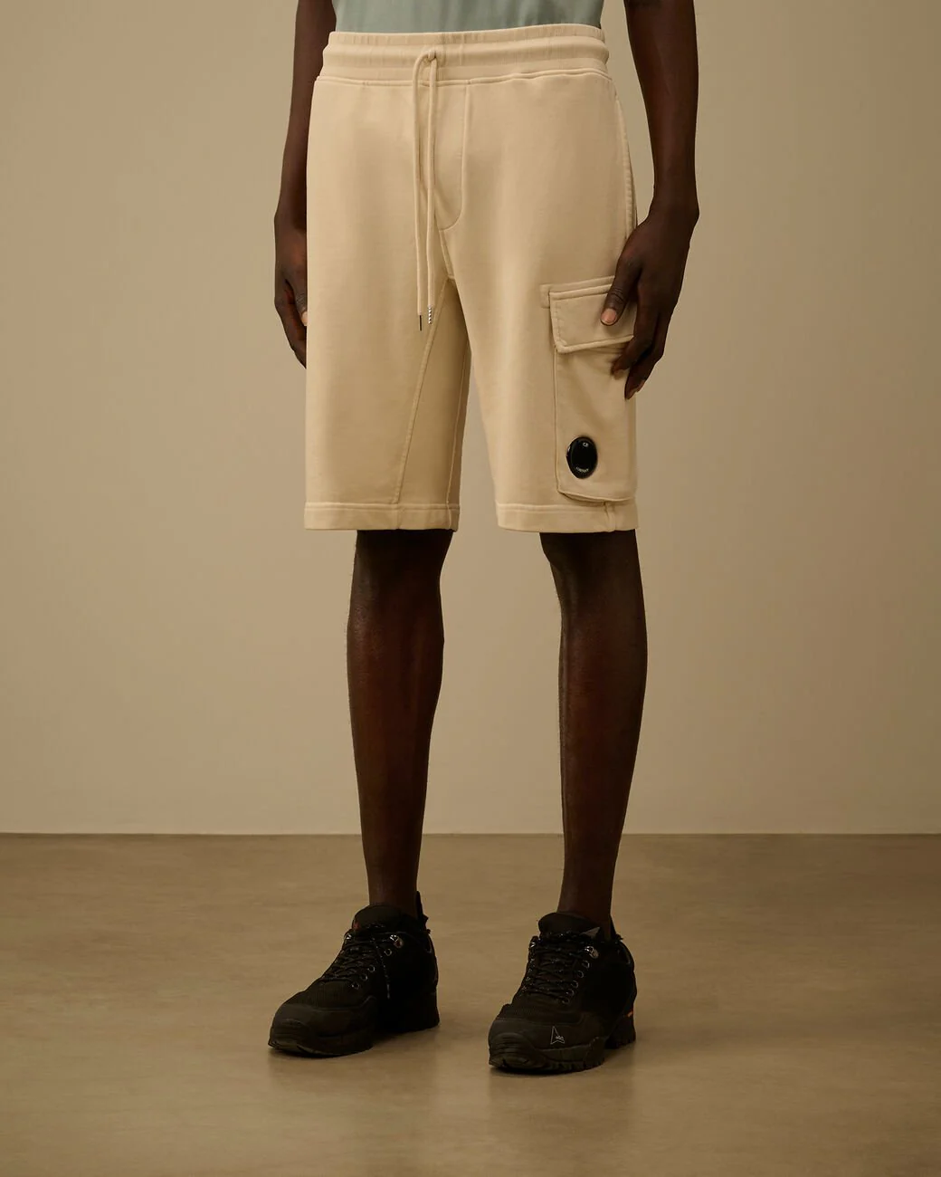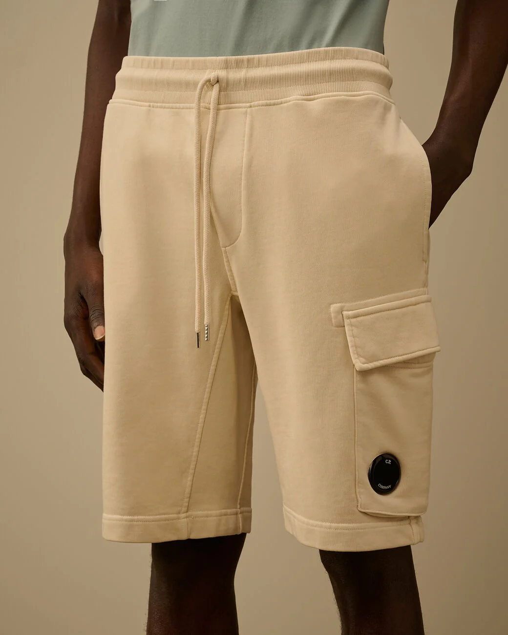 C.P. COMPANY – Cotton Diagonal Fleece Cargo Sweatshorts Beige
