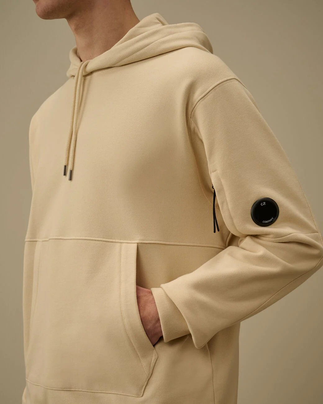 C.P. COMPANY – Diagonal Raised Fleece Hooded Lens Sweatshirt Beige crème