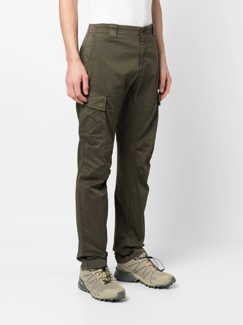 Pantalon cargo fonctionnel à la coupe ergonomique, doté de passants de ceinture, d’une braguette zippée surmontée d’un bouton et de poches en biais pour les mains. Modèle doté de deux poches arrière et de deux poches cargo à rabat, et rehaussé du détail en forme de verre de lunette C.P. COMPANY. Modèle confectionné dans un tissu léger Stretch Sateen, un coton mat ultra-extensible alliant souplesse et robustesse. Teint en pièce pour plus de profondeur et d’intensité dans les couleurs.