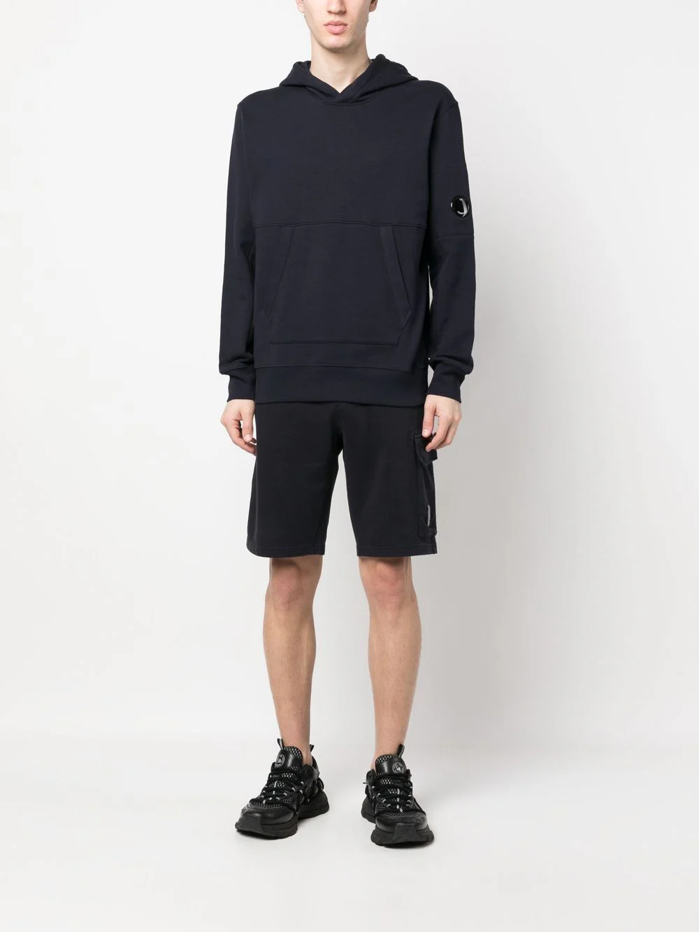 Ce short présente une longueur genoux, des poches en biais pour les mains, une taille réglable à cordons de serrage, et une poche supplémentaire ornée du détail en forme de verre de lunette C.P. COMPANY sur la jambe. Modèle confectionné dans un molleton de coton léger, puis teint en pièce pour plus de profondeur et d’intensité dans les couleurs.