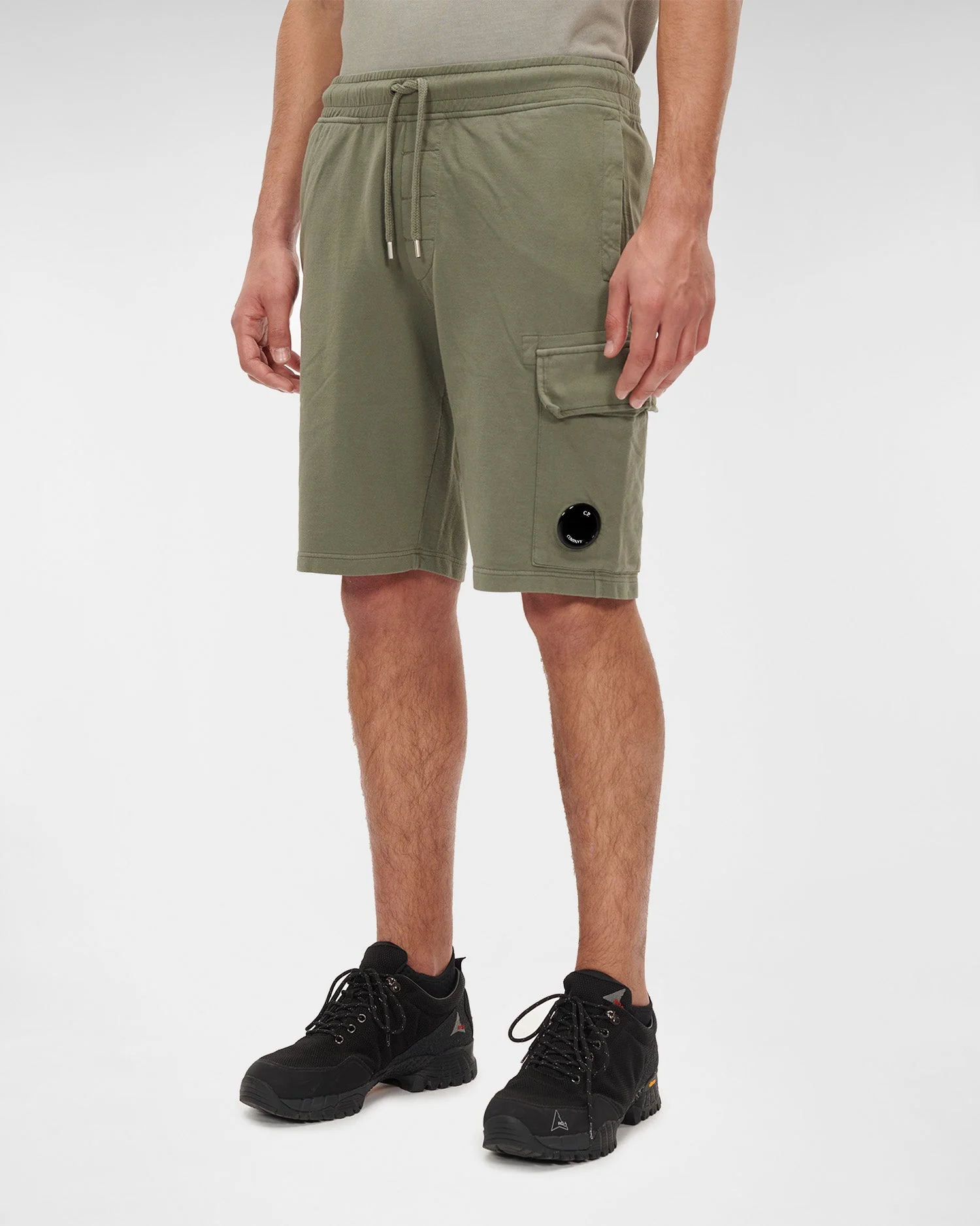 Ce short présente une coupe droite longueur genoux, de grandes poches en biais pour les mains, une taille élastique à cordons de serrage, et une poche supplémentaire ornée du détail en forme de verre de lunette C.P. COMPANY sur la jambe. Modèle confectionné dans un molleton de coton léger synonyme de souplesse, puis teint en pièce pour plus de profondeur et d’intensité dans les couleurs.