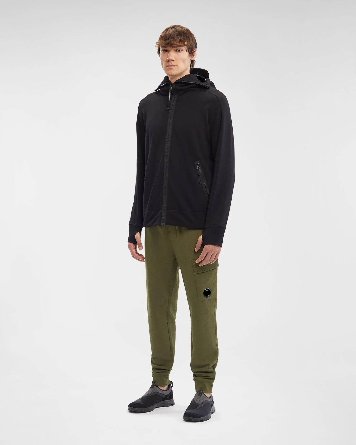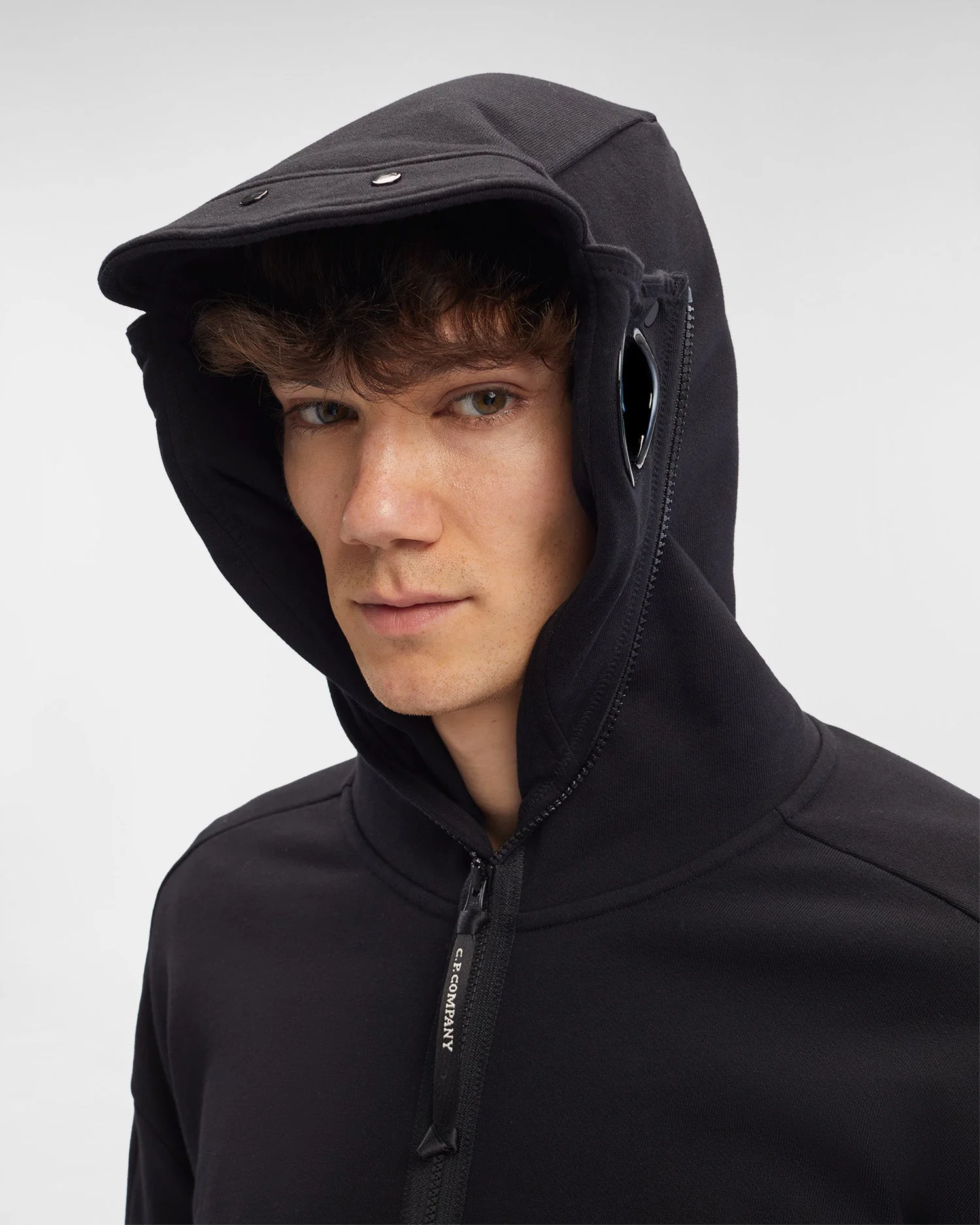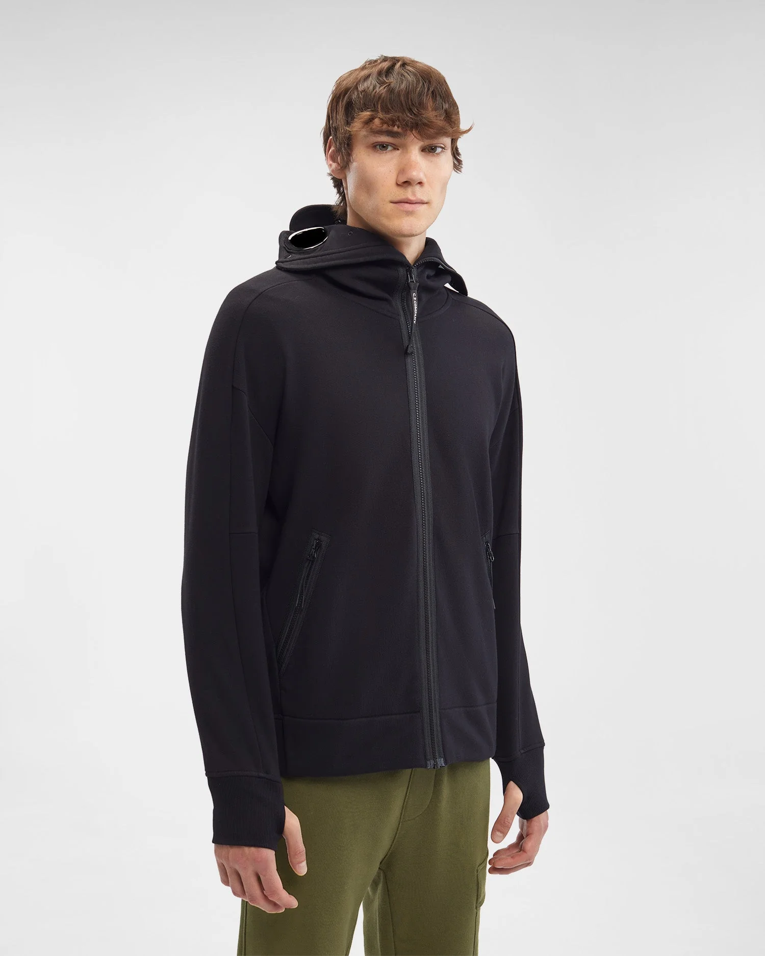 C.P Company Sweat à capuche zippé Diagonal Raised Fleece Goggle Black