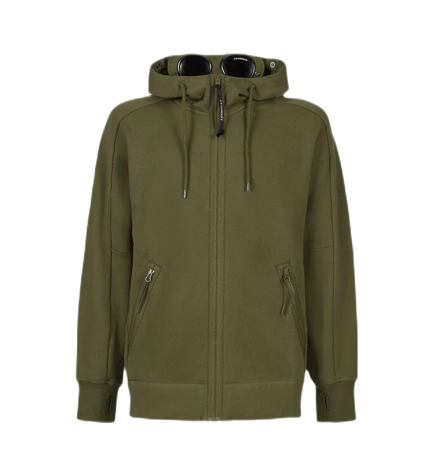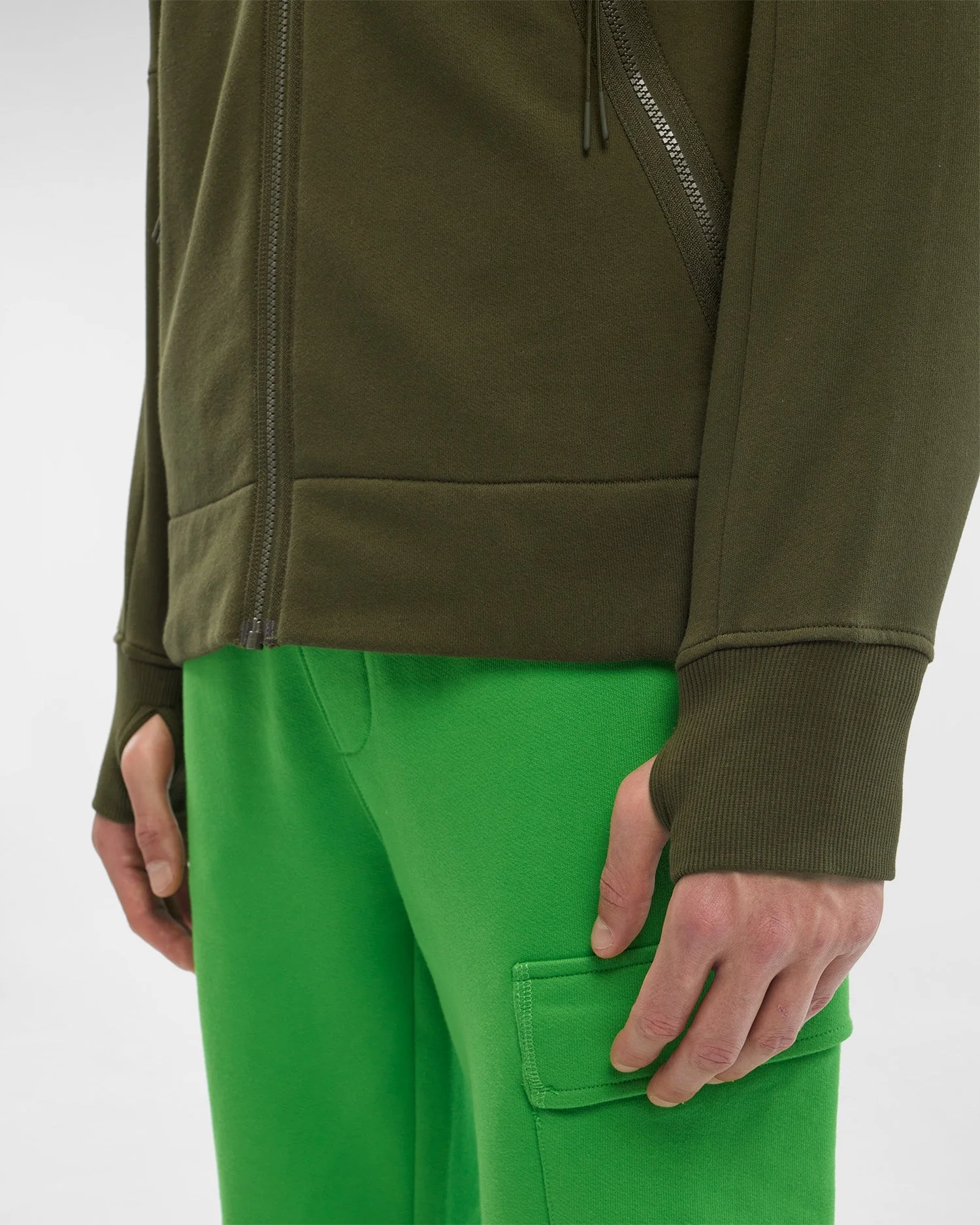 C.P. COMPANY Sweat à capuche zippé Diagonal Raised Fleece Goggle Ivy Green