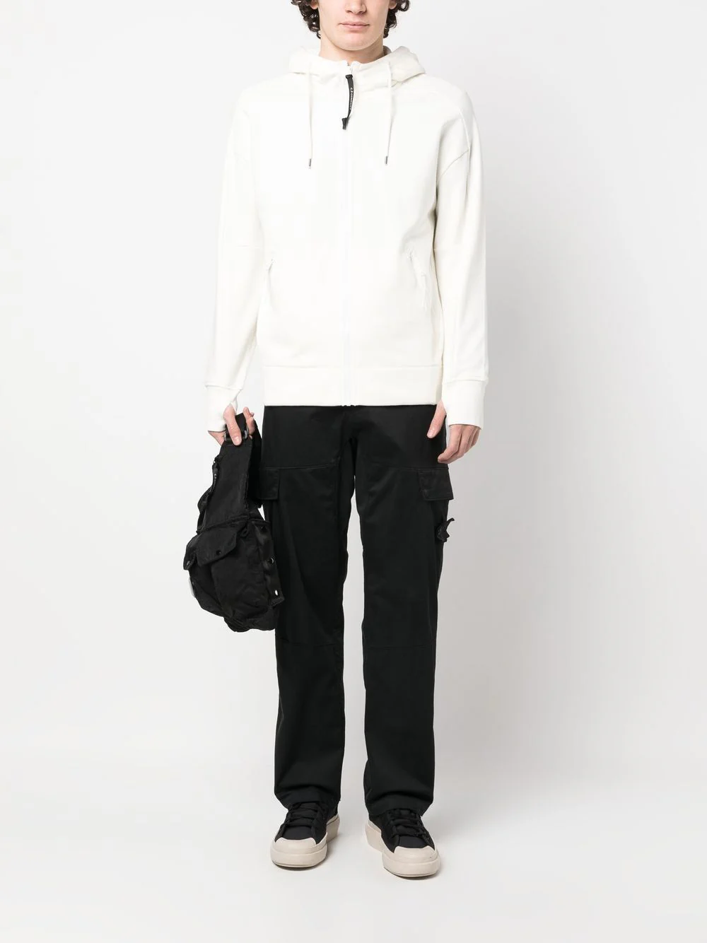 C.P Company Sweat à capuche zippé Diagonal Raised Fleece Goggle White