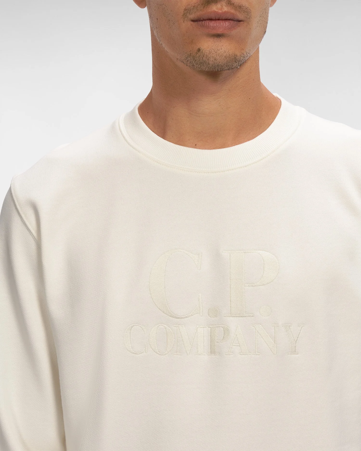 C.P Company Sweat Diagonal Raised Fleece Gauze White