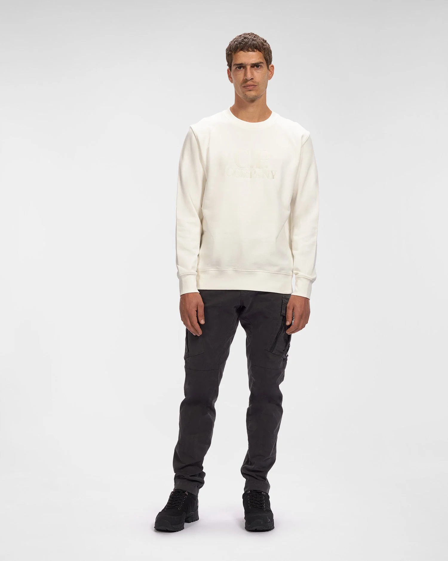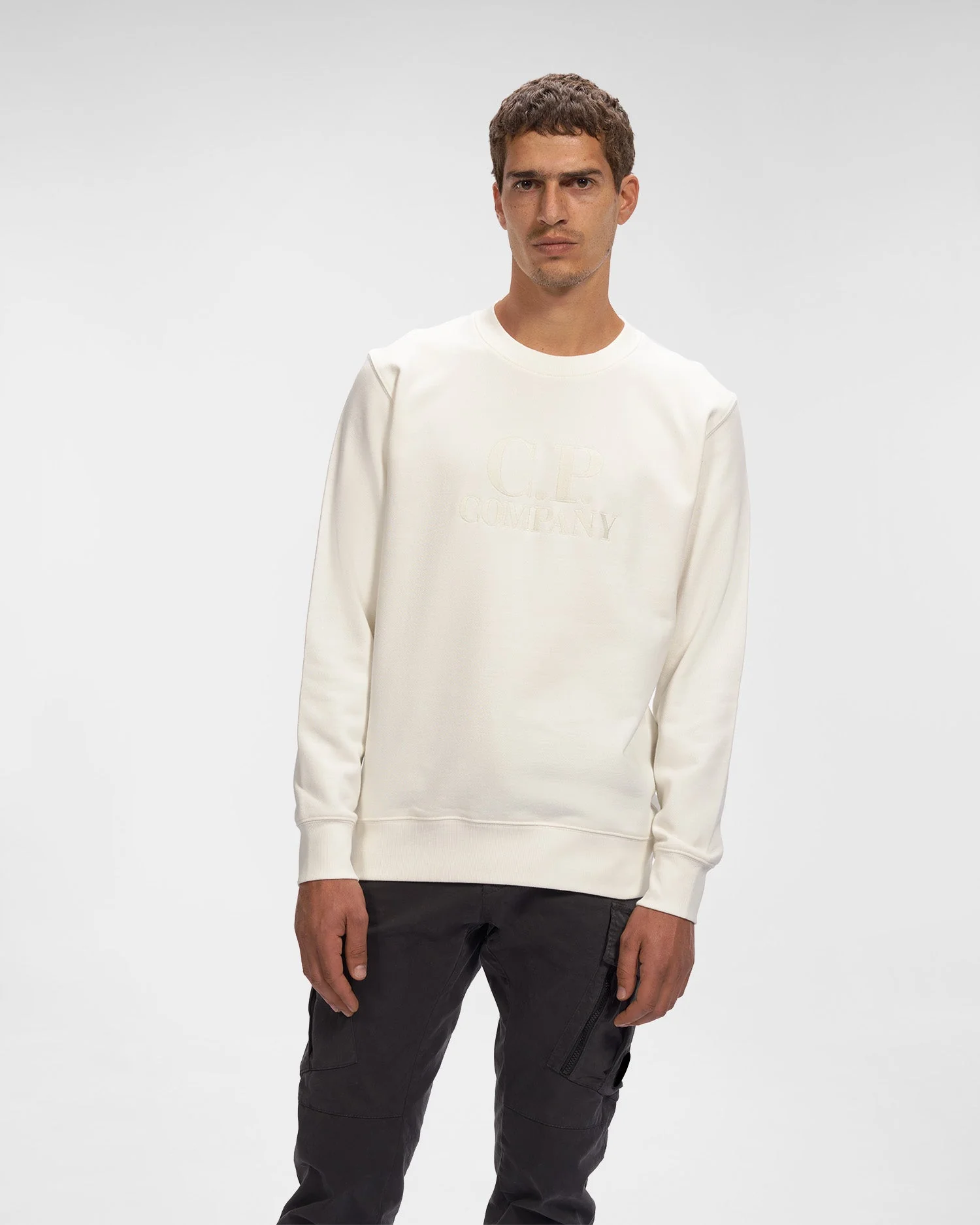Ce sweat-shirt ras du cou est confectionné dans notre molleton en relief diagonal, un coton bouclé mi-épais offrant un confort absolu et une grande robustesse. Ce modèle présente des bords côtelés et le logo C.P. Company sur la poitrine.