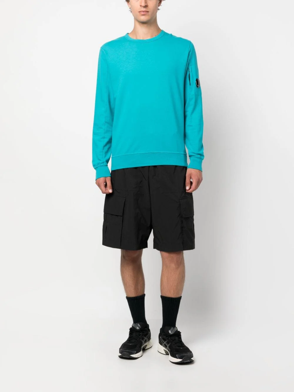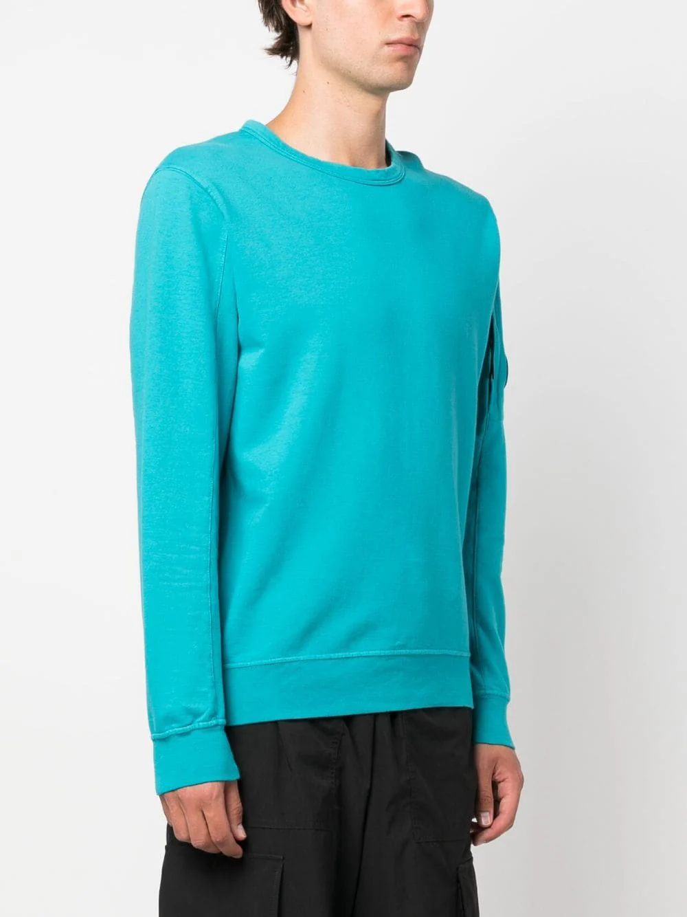 Ce sweat-shirt arbore un col ras du cou classique et une poche sécurisée sur la manche portant le détail en forme de verre de lunette C.P. Company. Modèle confectionné dans un molleton de coton léger synonyme de souplesse, puis teint en pièce pour plus de profondeur et d’intensité dans les couleurs.