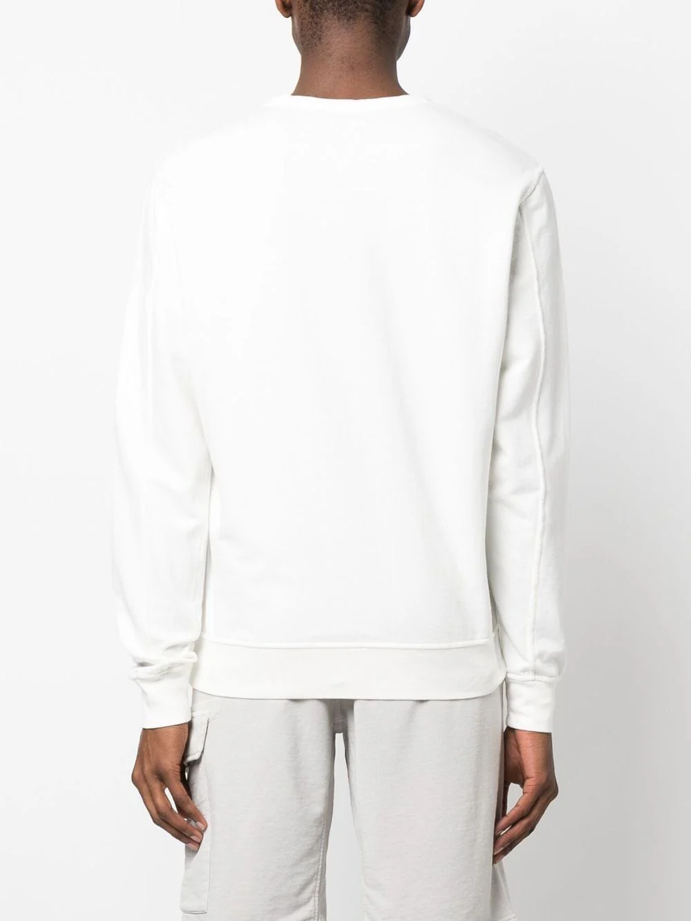 Ce sweat-shirt arbore un col ras du cou classique et une poche sécurisée sur la manche portant le détail en forme de verre de lunette C.P. Company. Modèle confectionné dans un molleton de coton léger synonyme de souplesse, puis teint en pièce pour plus de profondeur et d’intensité dans les couleurs.