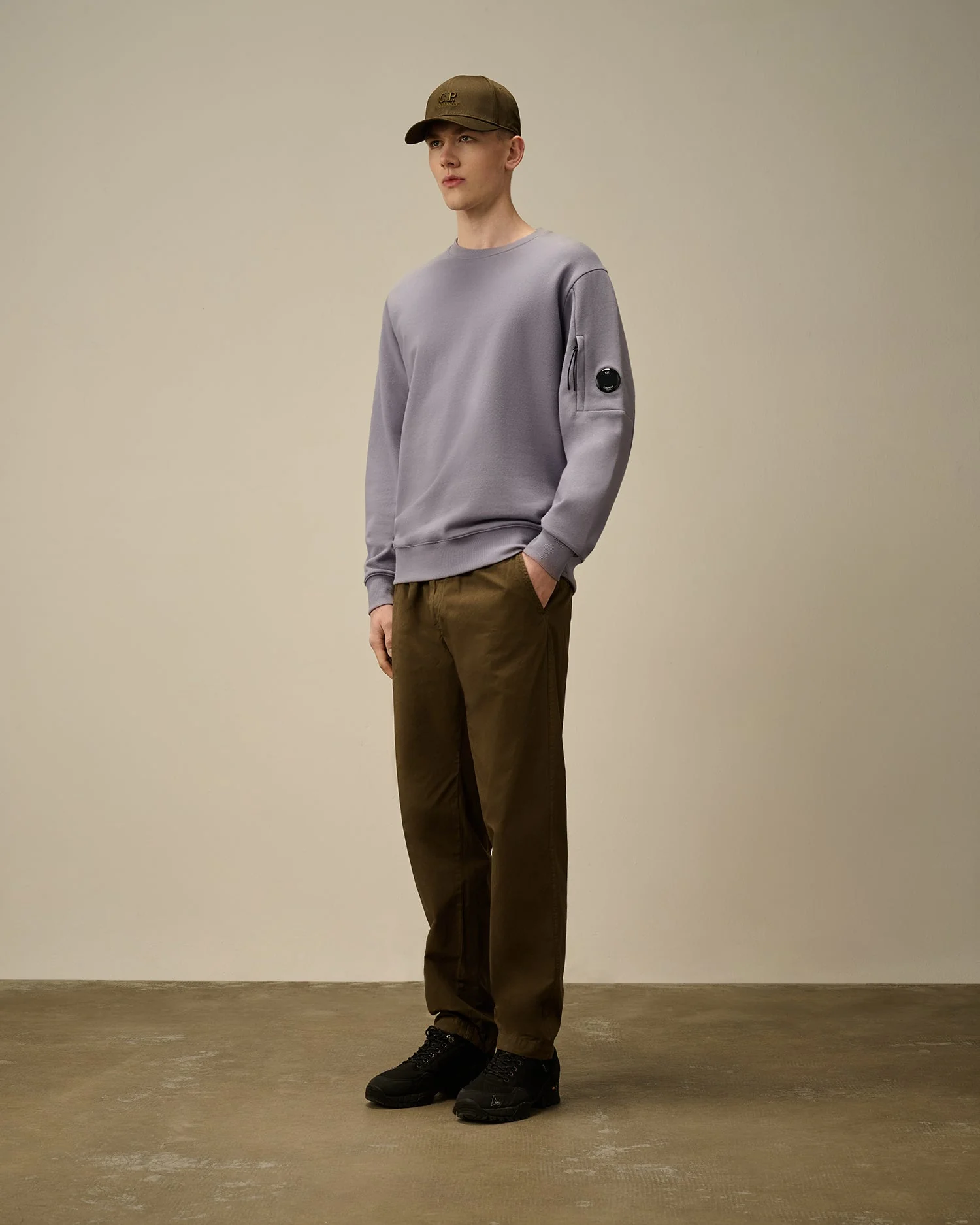 Sweat ras du cou confectionné en coton brossé à tissage diagonal de poids moyen. Détail de la lentille. Coupe régulière.