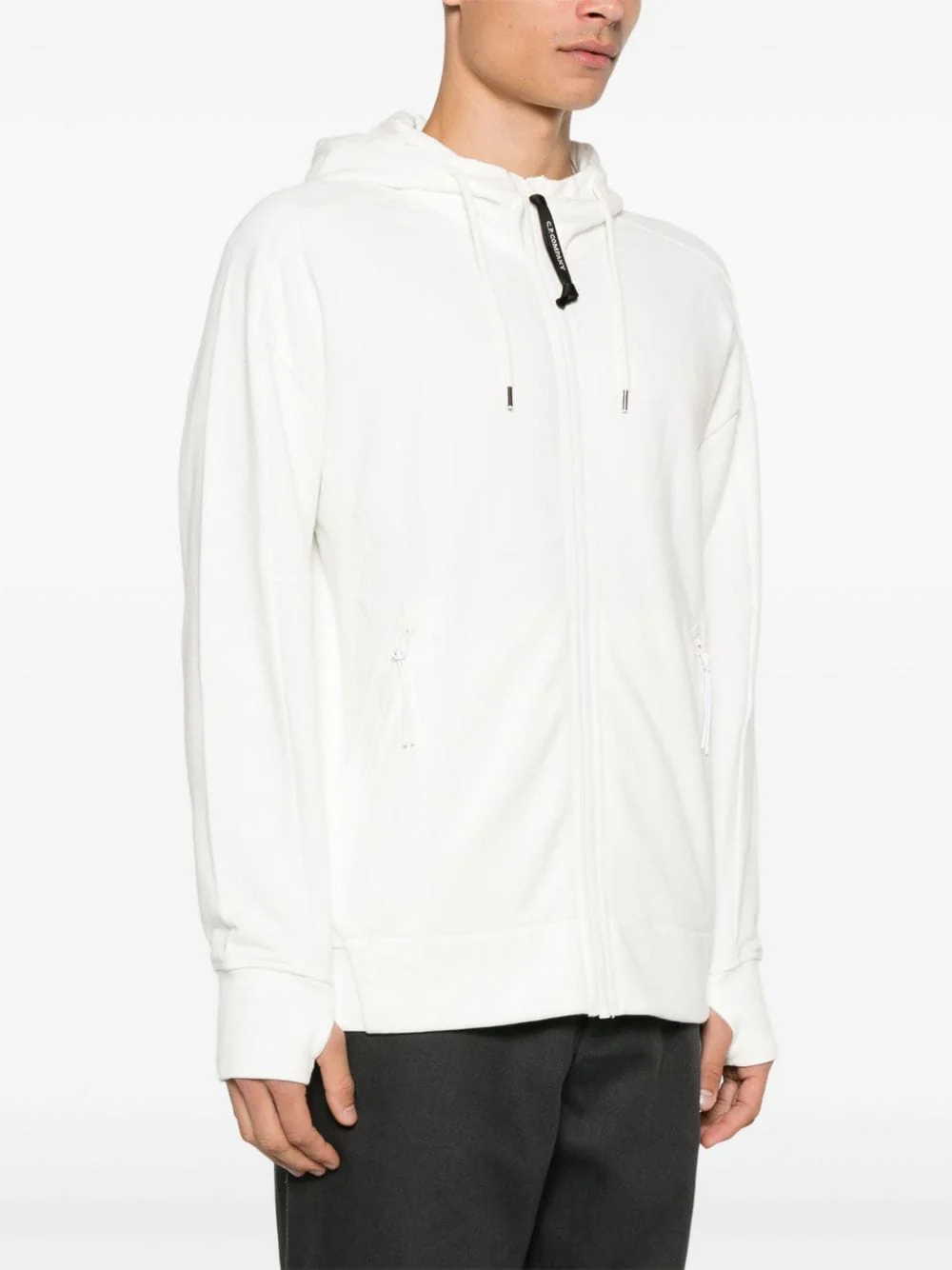 C.P. COMPANY – Sweat zippé à capuche blanc