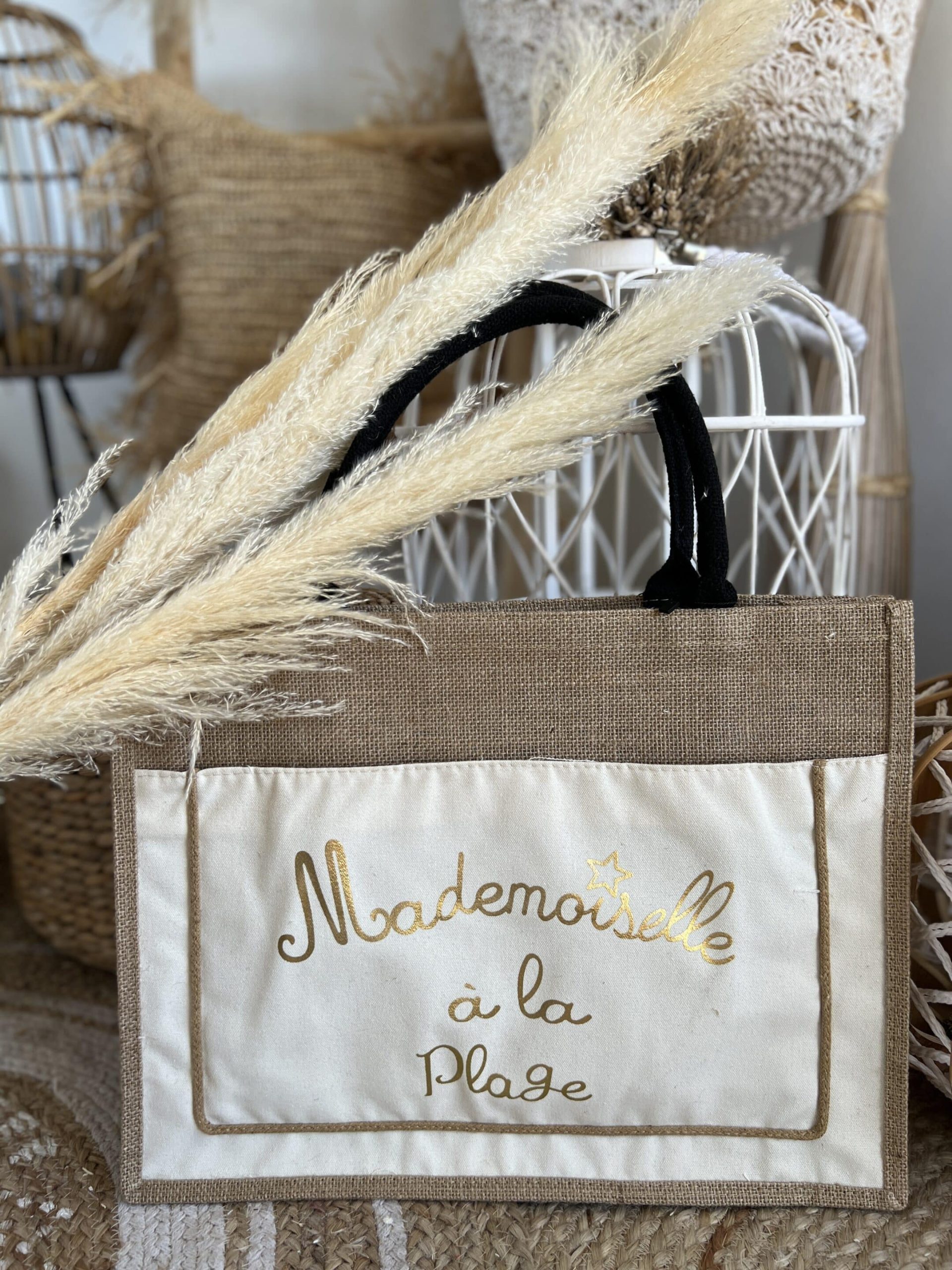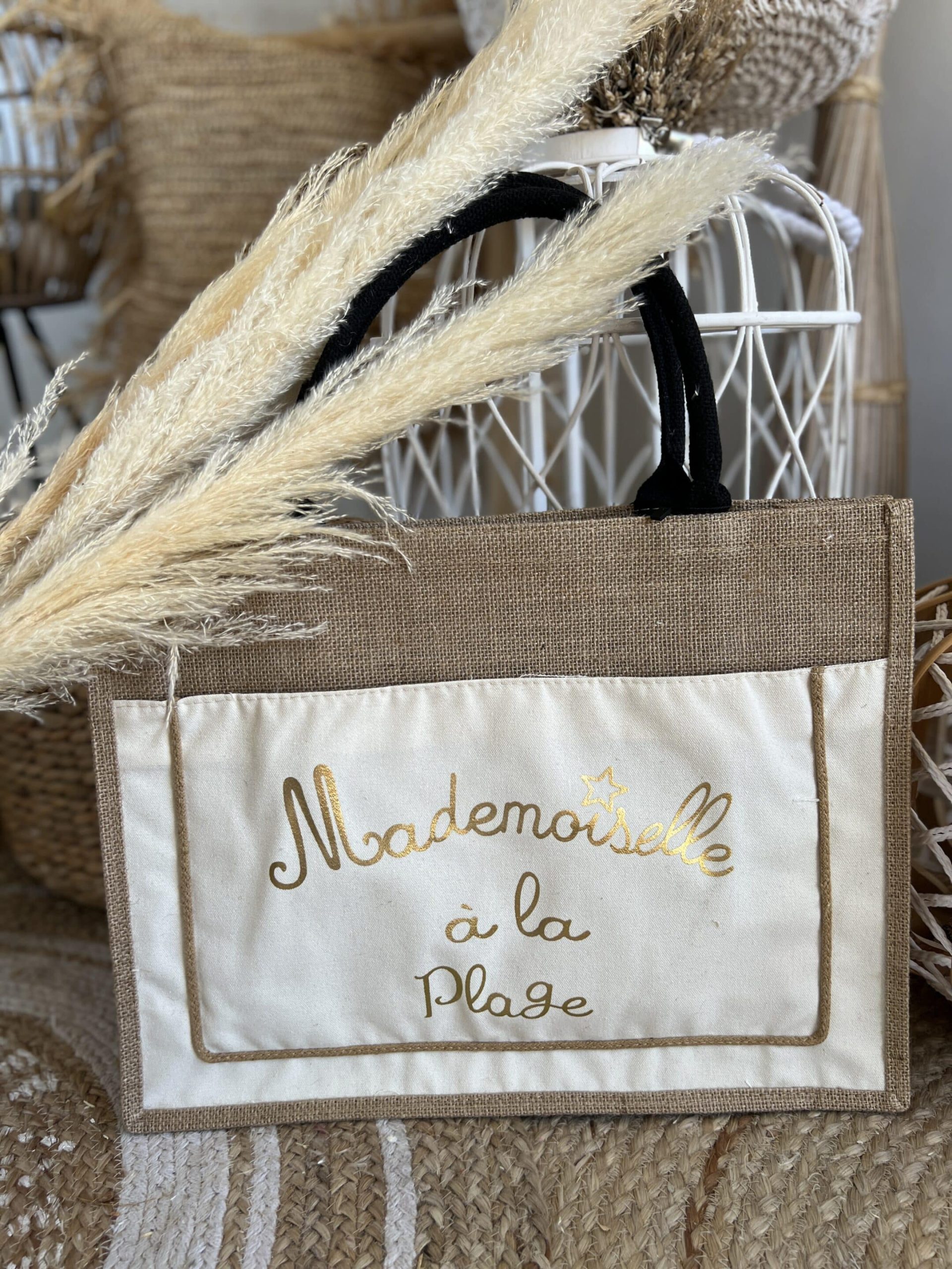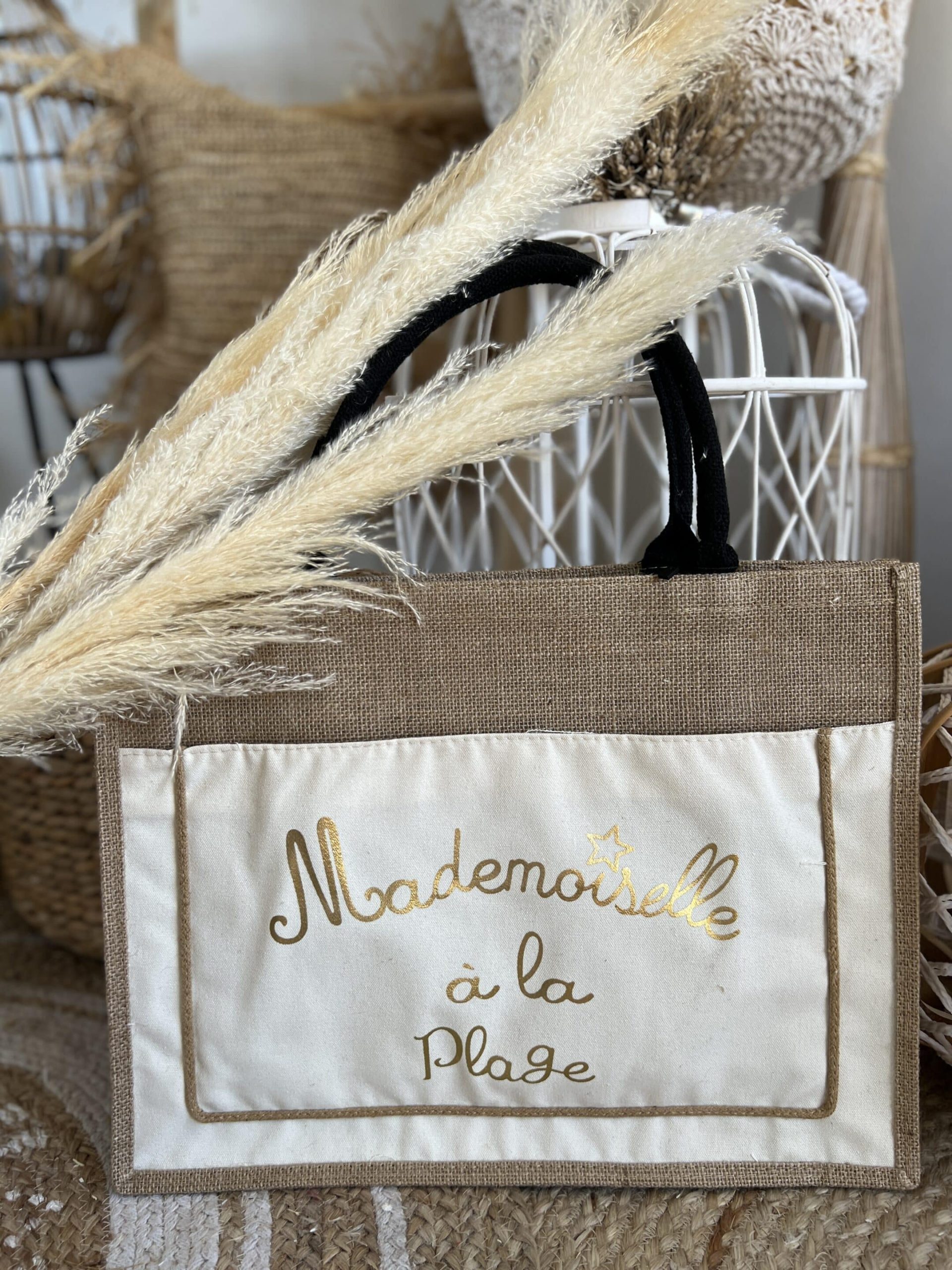 Très beau Cabas coton toile de jute fond cartonne 38×24 fermeture inscription des deux cĂ´tĂ©s