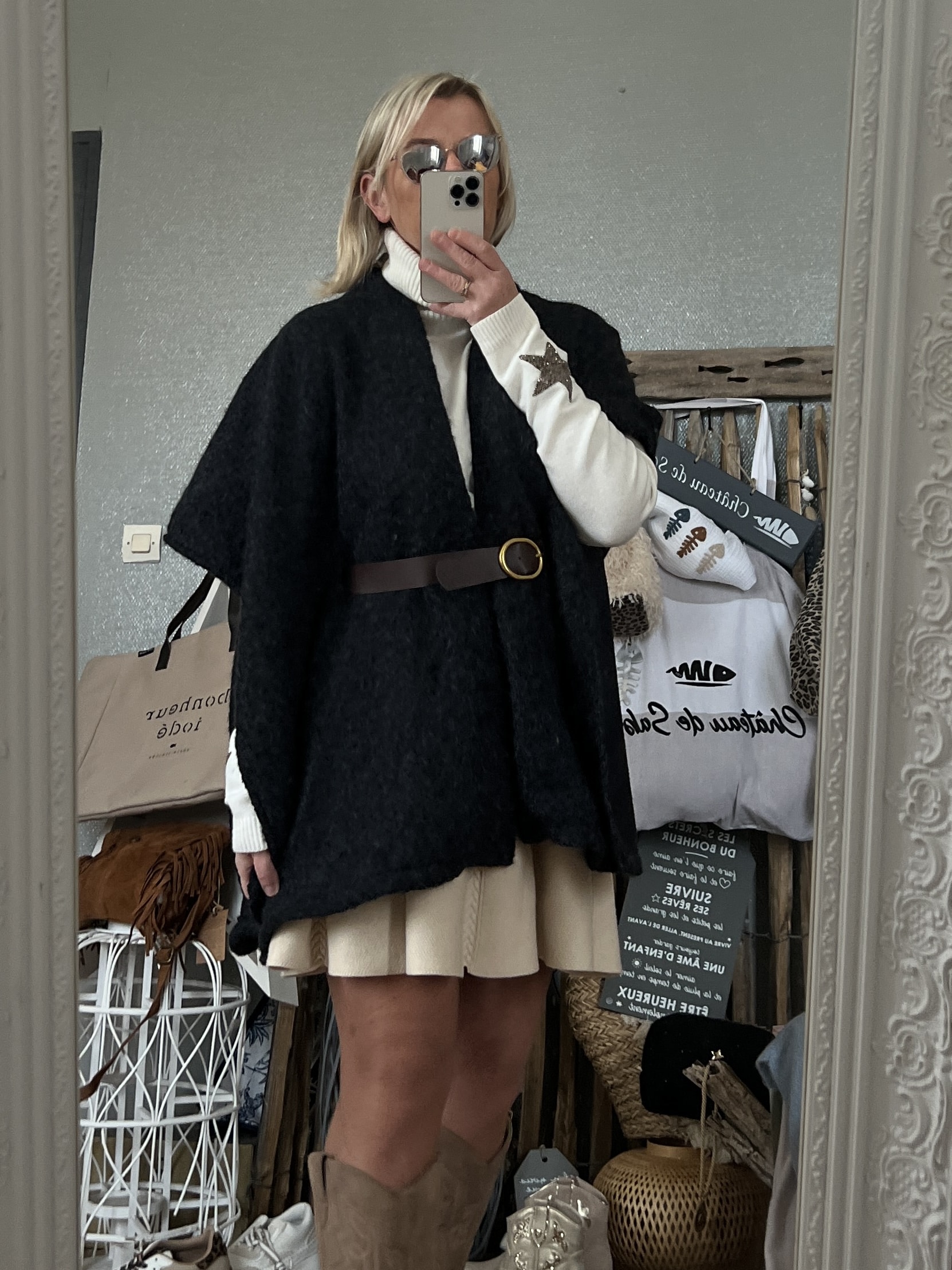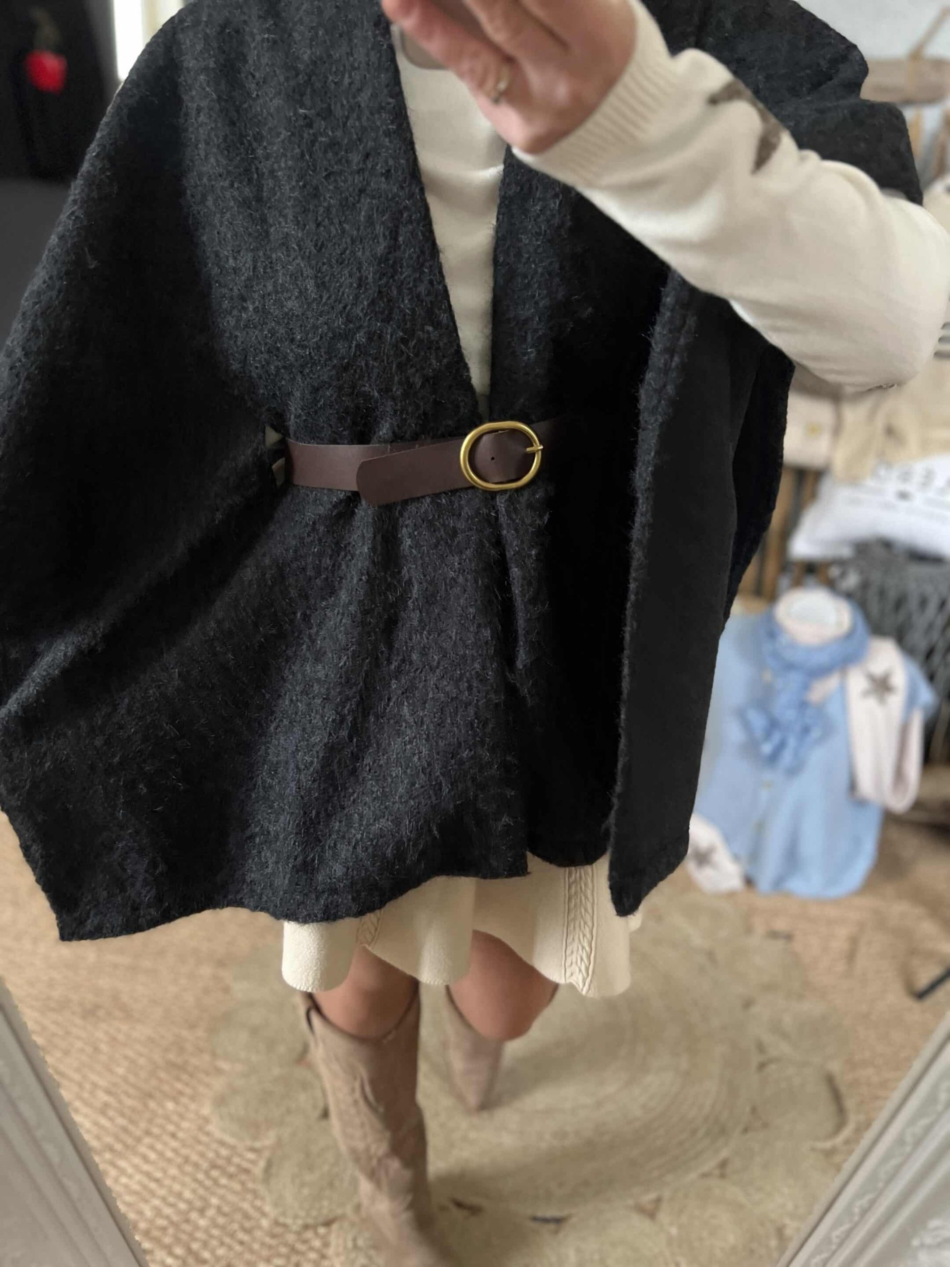 La cape Celestine est la pièce très tendance cette année. Elle nous donne une allure folle. On a adoré la coupe de celle ci car sa ceinture nous fait une magnifique silhouette!
