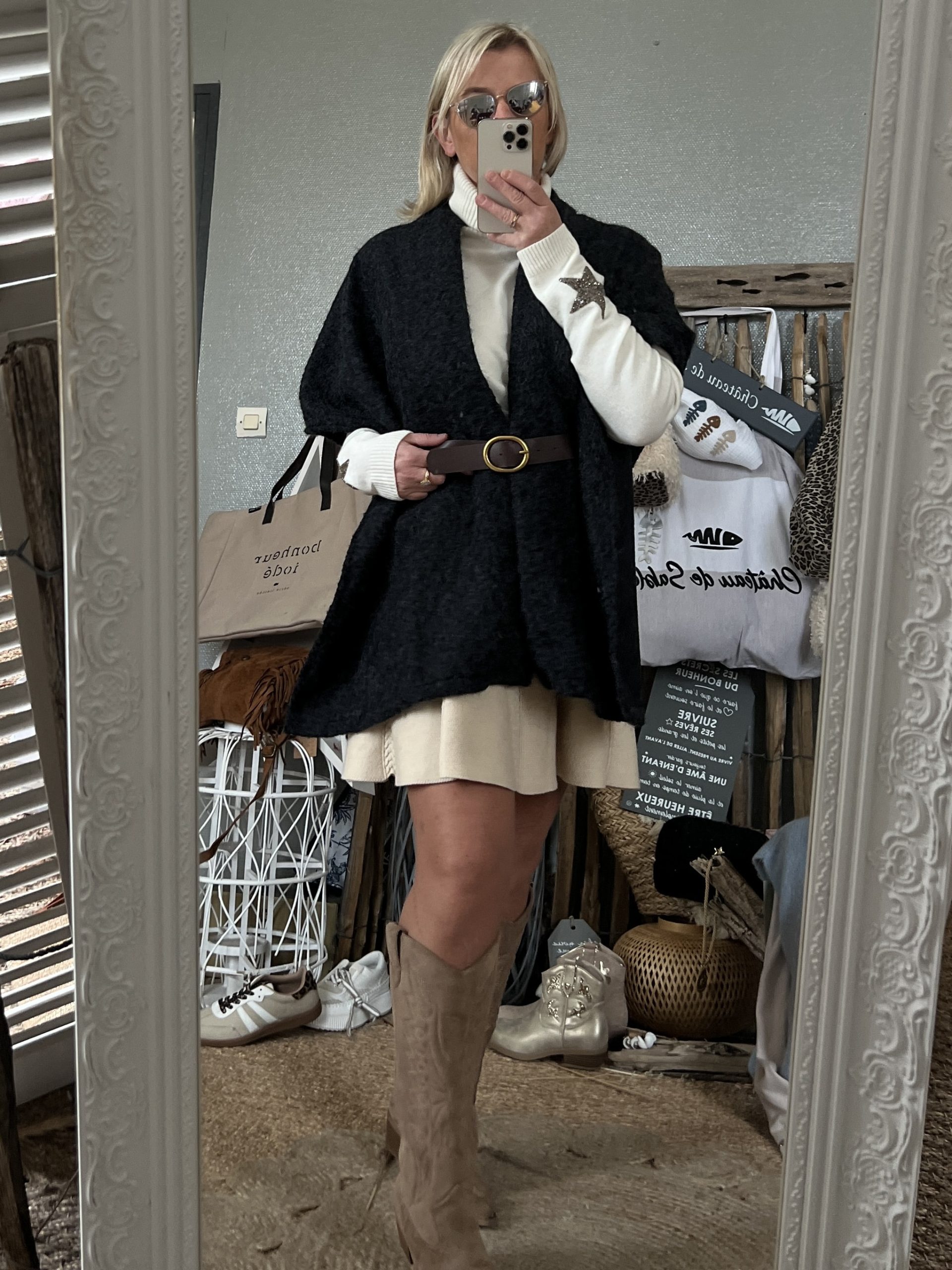 - Ceinture marron – boucle dorée.