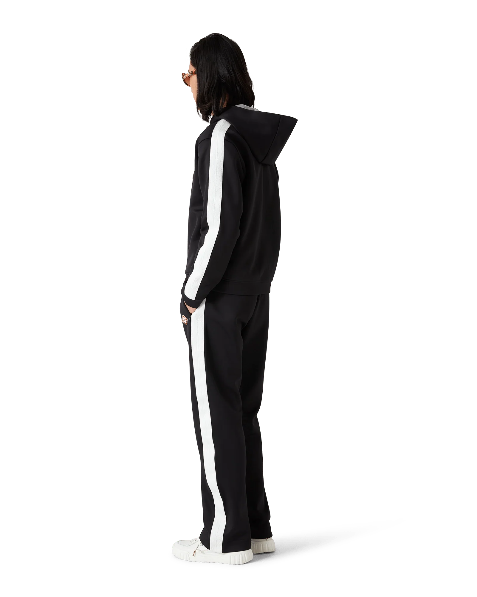 Le sweat-shirt à capuche Scuba est un modèle de sport à manches longues fabriqué en jersey Scuba et doté de détails à rayures des épaules jusqu’aux manches. Il est doté d’une capuche, d’une fermeture zippée sur le devant, de poignets et d’un ourlet élastiqués et d’un monogramme en diamant emblématique.