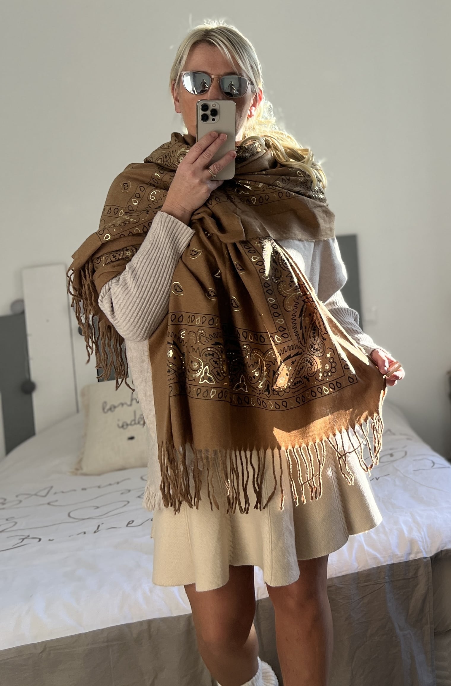 Châle écharpe caramel