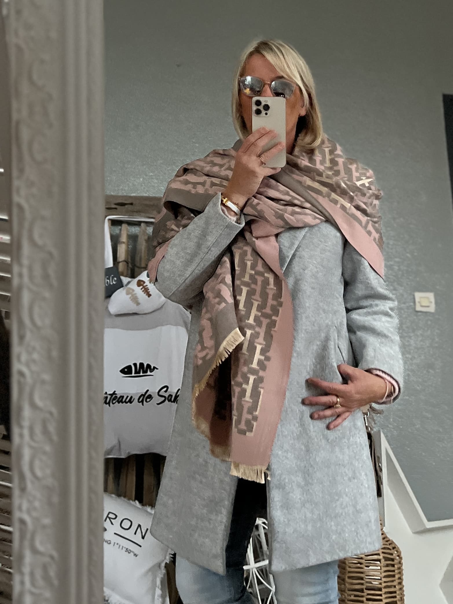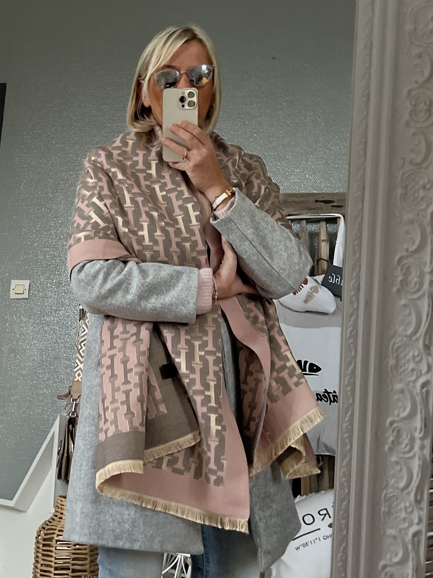 Châle écharpe gris rose