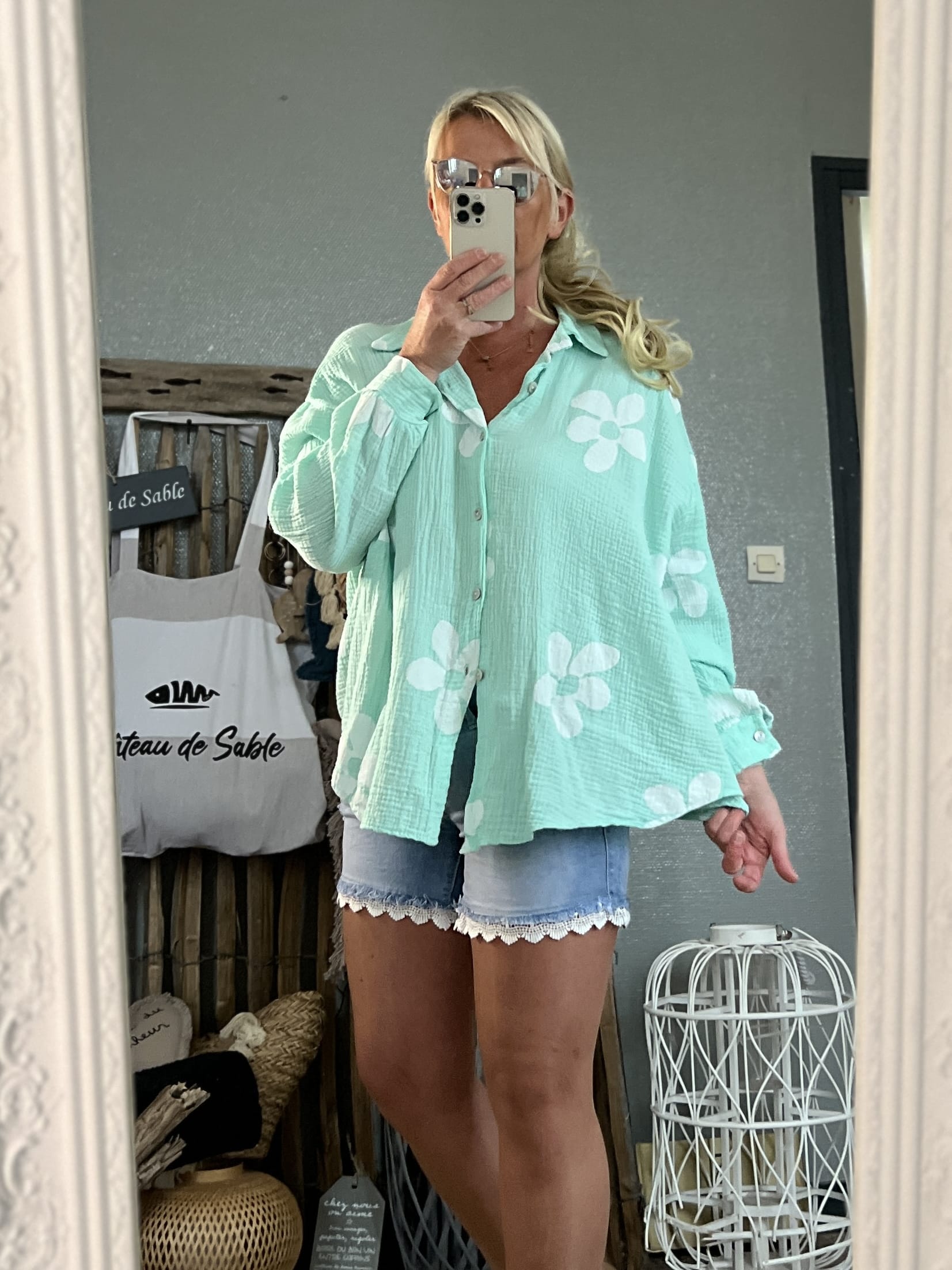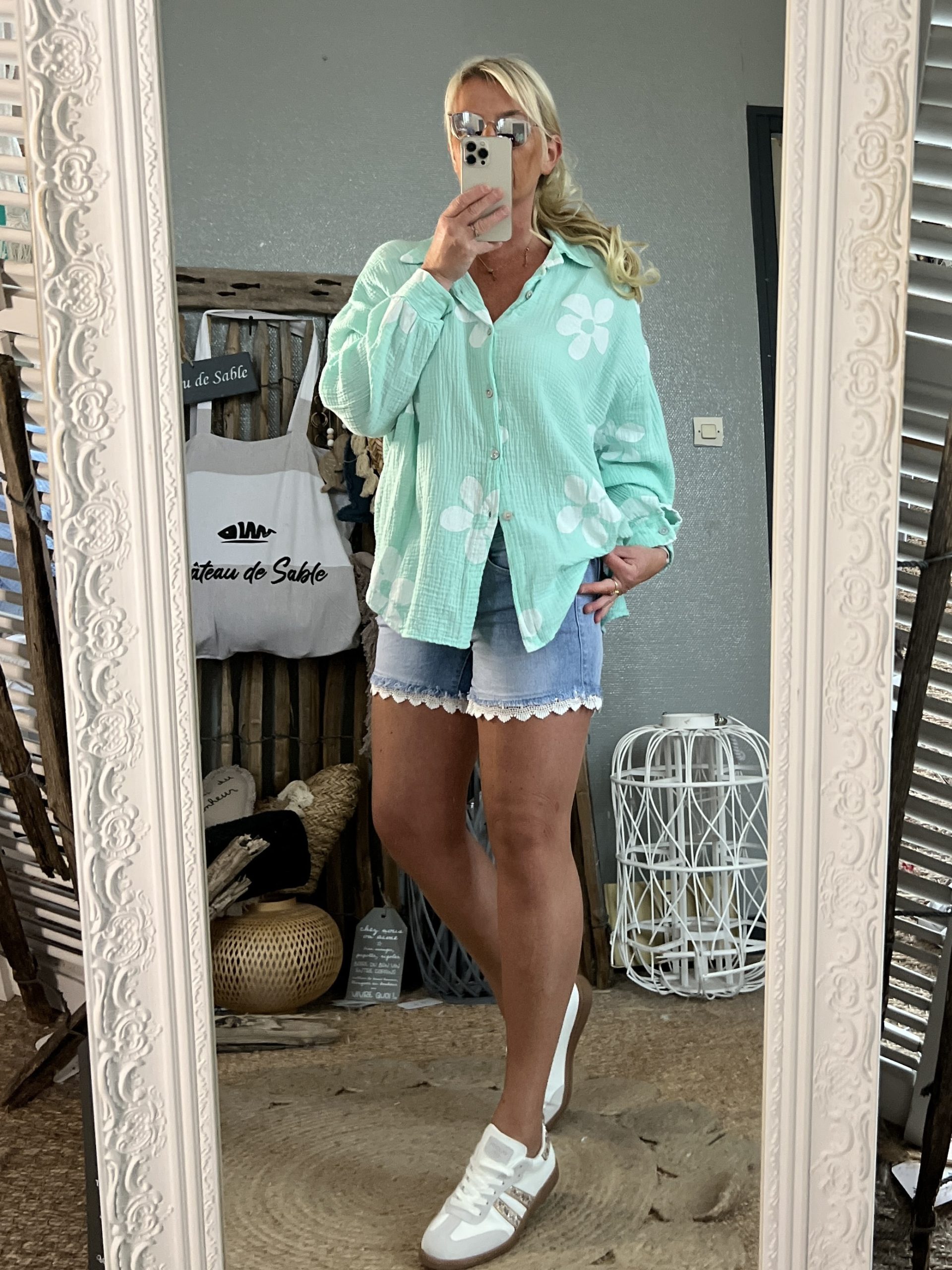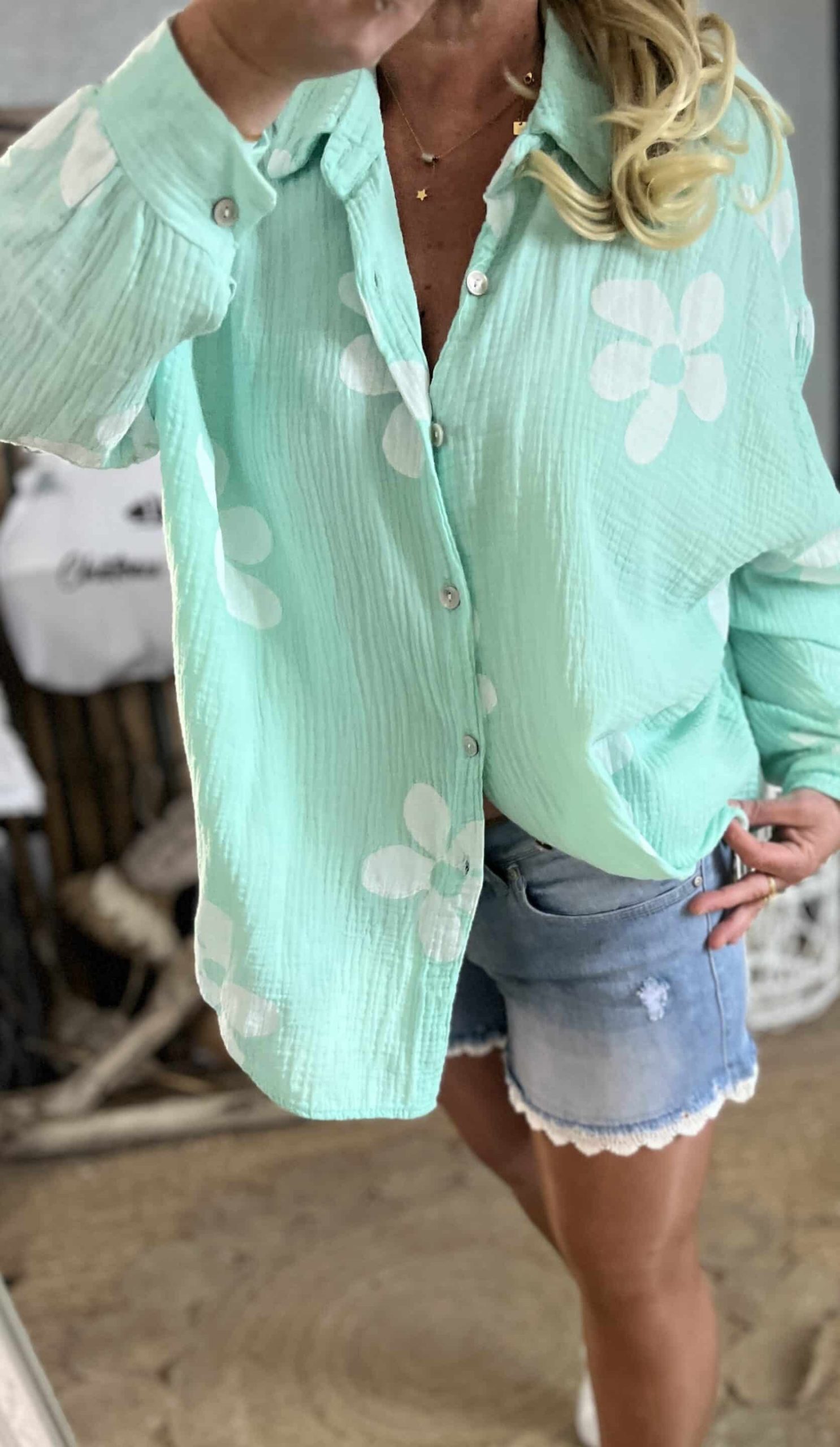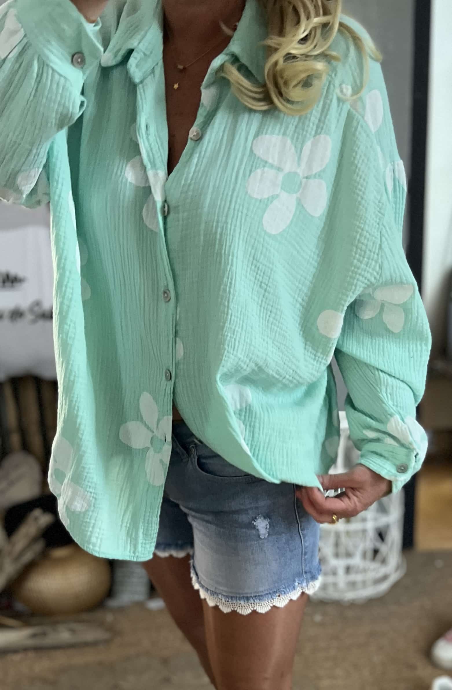 Chemise flowers lagon