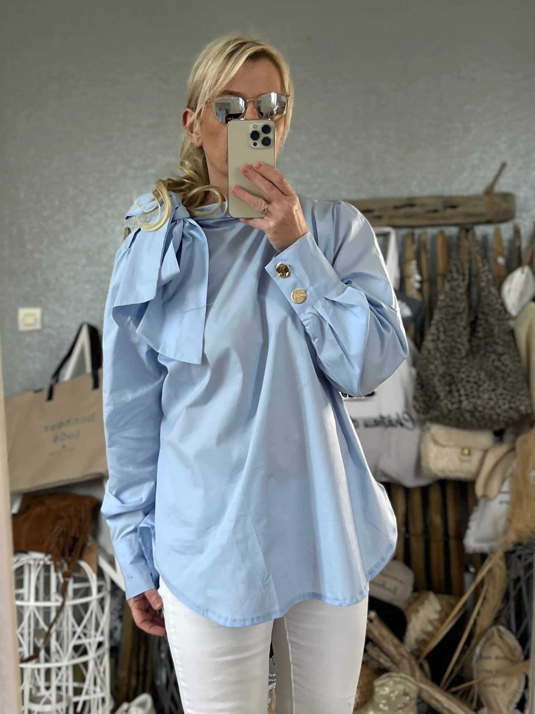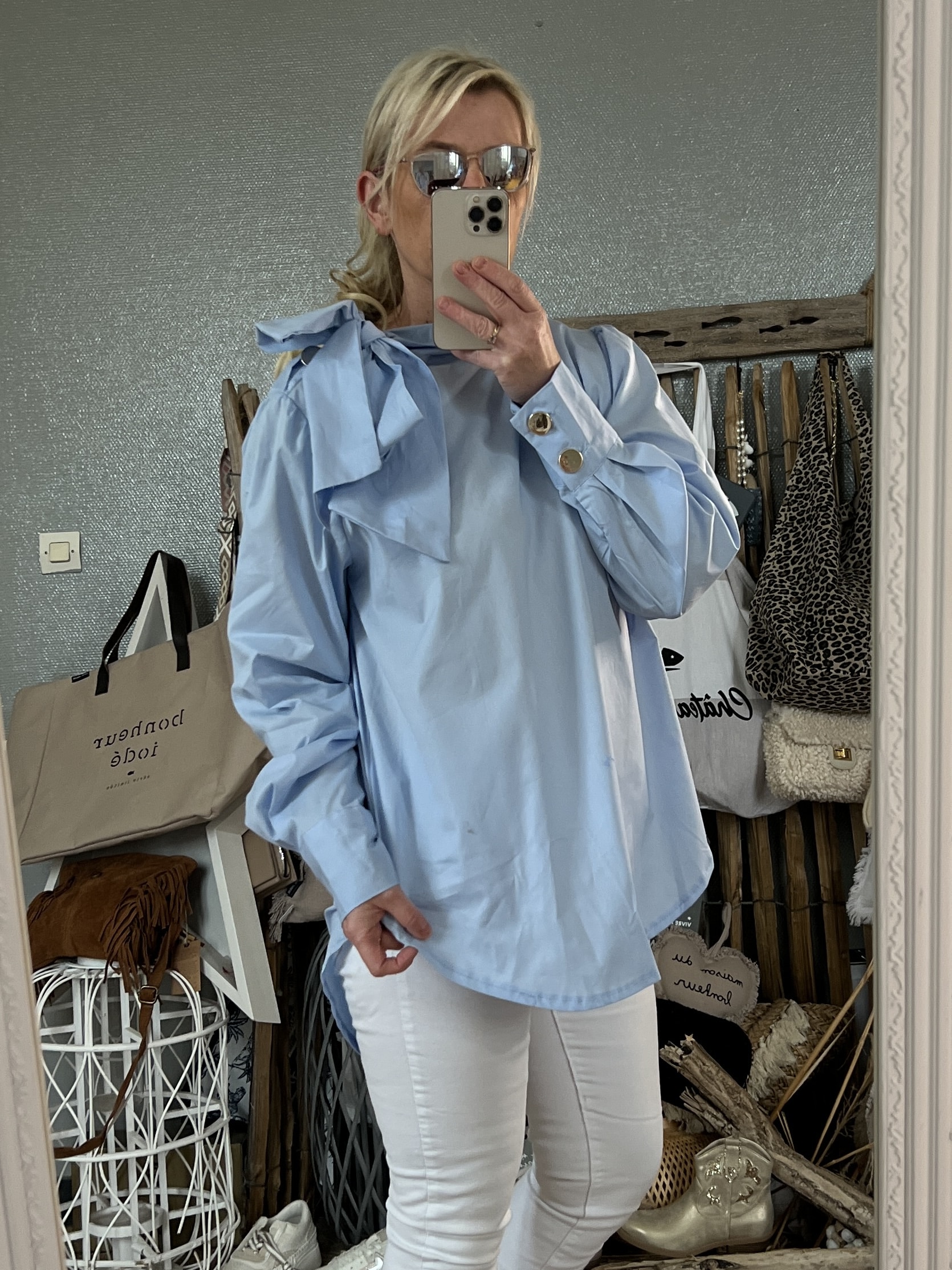 Je suis fan de notre élégante chemise rayée ! Avec ses 3 boutons dorés sur l’épaule et sa cravate assortie qui permet de faire un joli noeud sur le côté, elle offre une touche chic et raffinée. Parfaite pour un look stylé! On l’aime particulièrement portée avec un jean Mesures: Longueur: 71cm devant – 82cm […]
