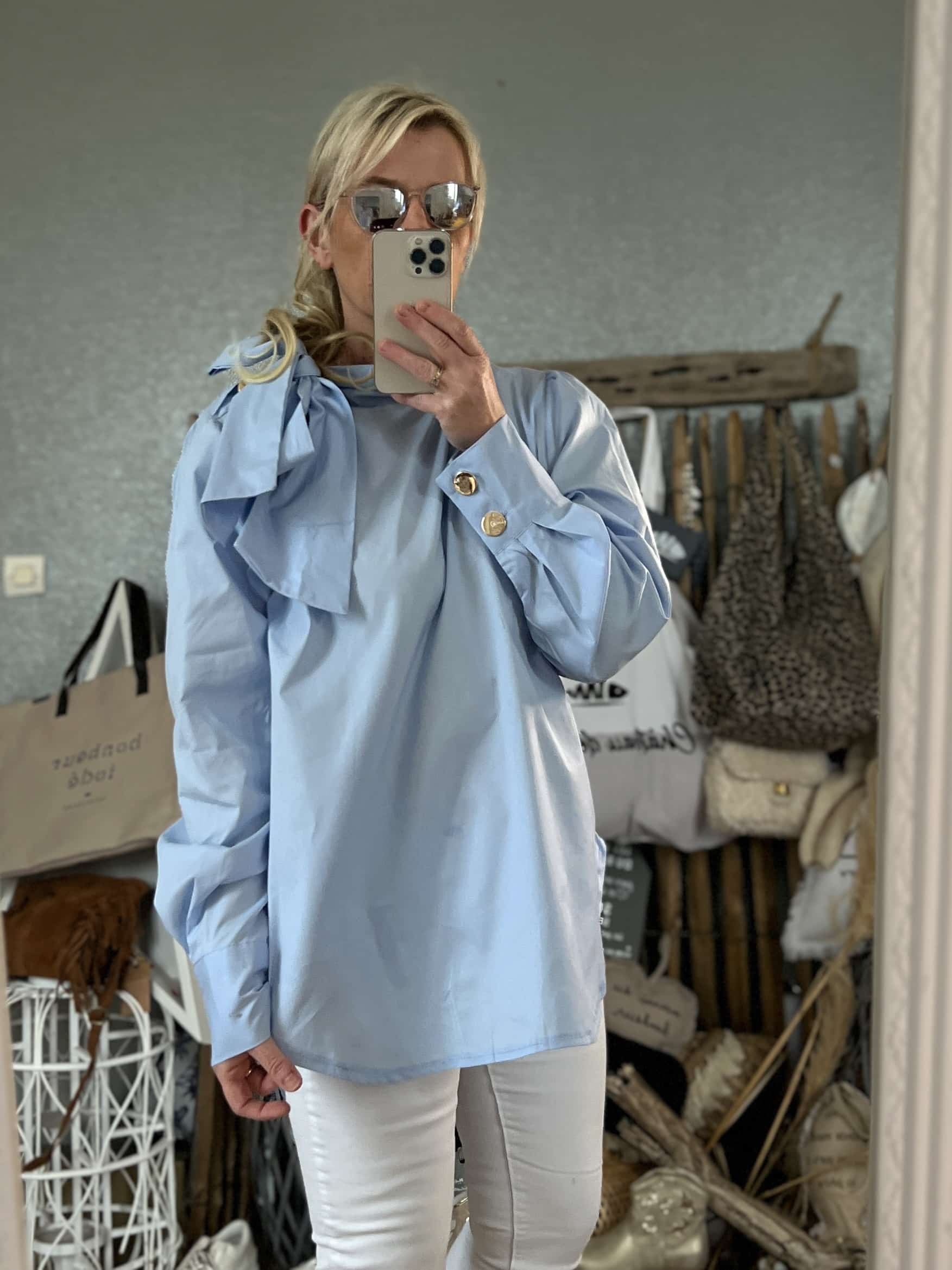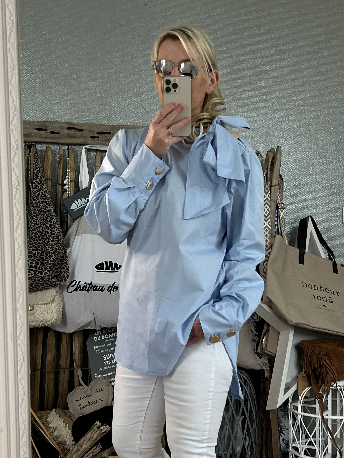 Je suis fan de notre élégante chemise rayée ! Avec ses 3 boutons dorés sur l’épaule et sa cravate assortie qui permet de faire un joli noeud sur le côté, elle offre une touche chic et raffinée. Parfaite pour un look stylé! On l’aime particulièrement portée avec un jean