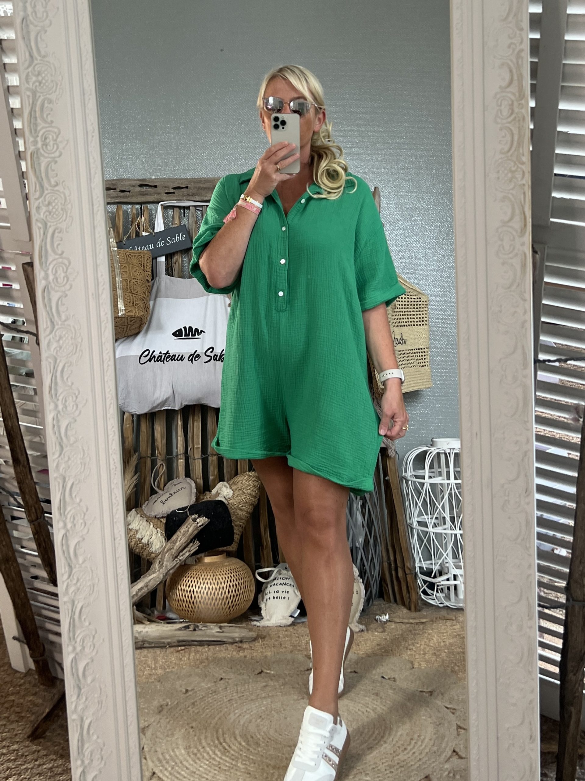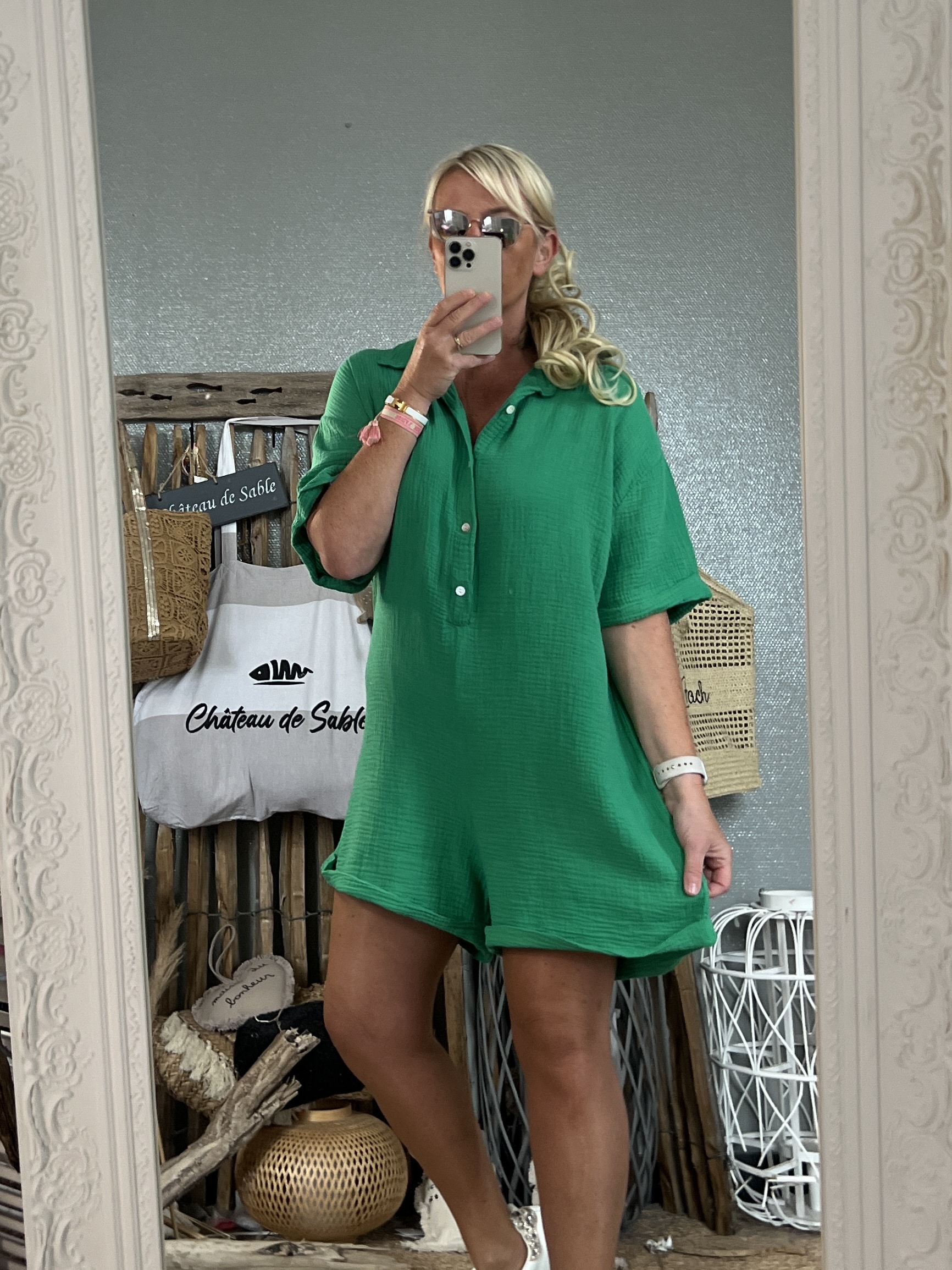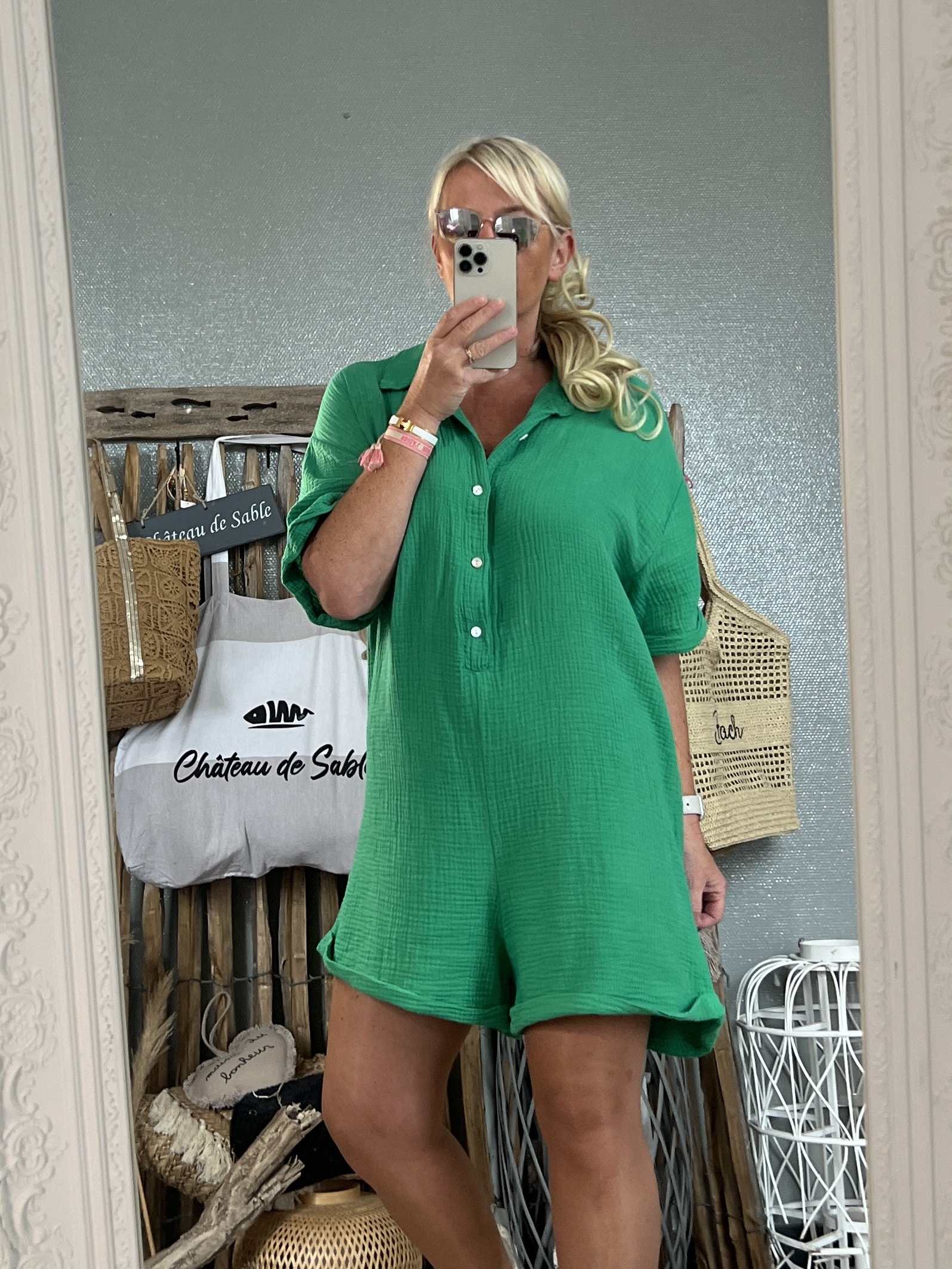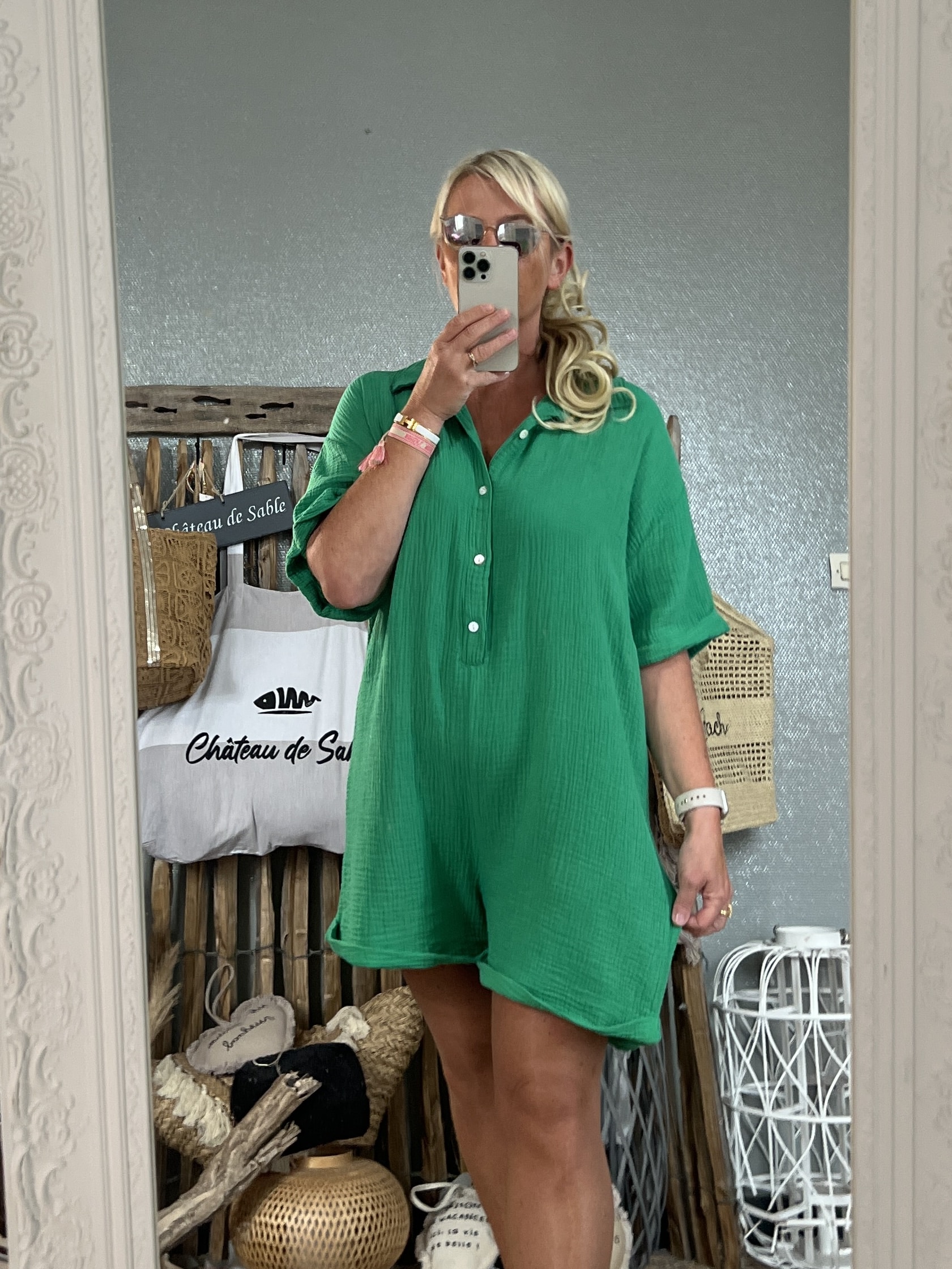 Combishort gaze de coton taille unique 36/42 oversize pour 36 je mesure 1,60m 50kgs pas d’échange ni retour sur le produit
