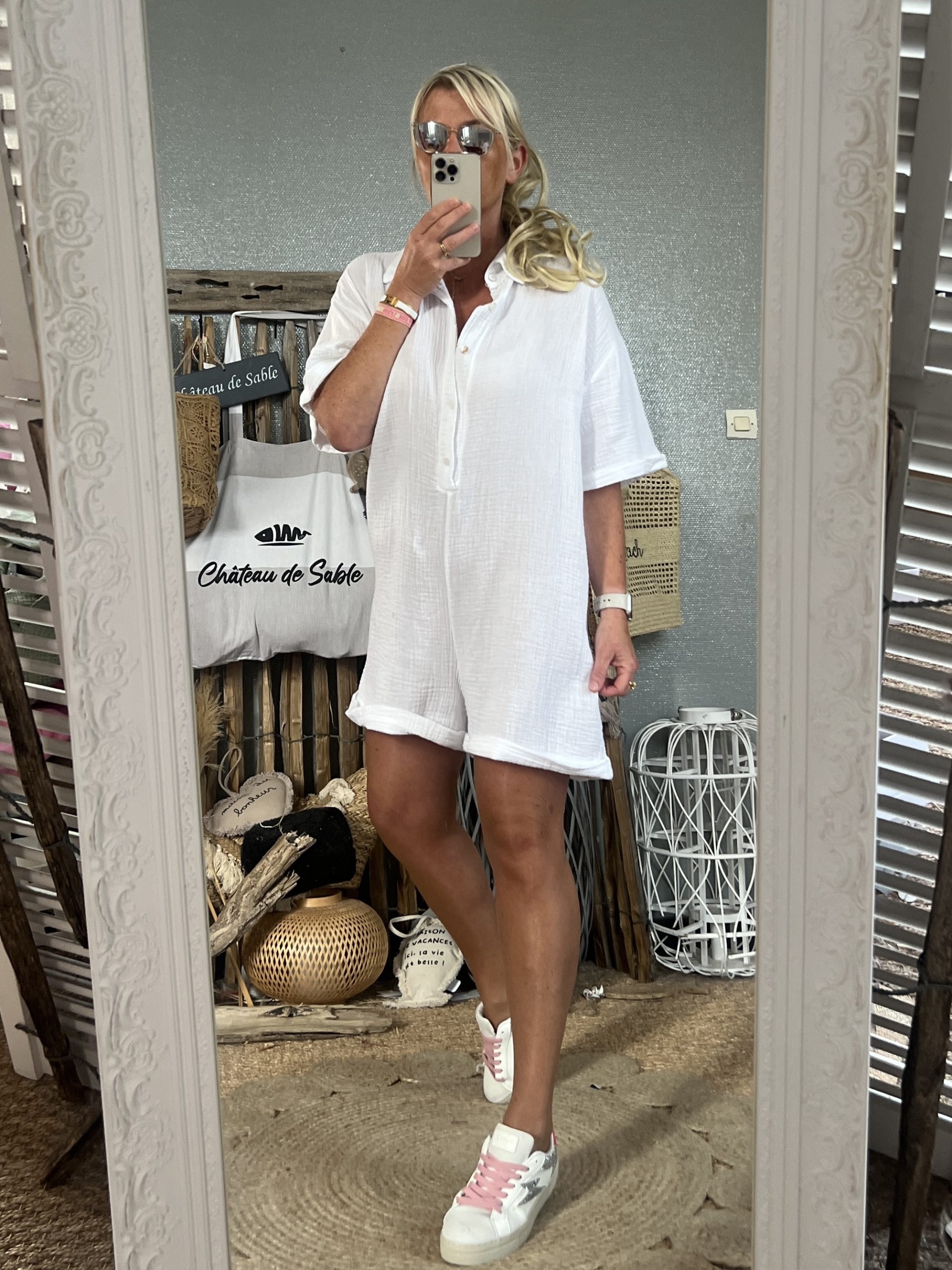 Combishort gaze de coton taille unique 36/42 oversize pour 36 je mesure 1,60m 50kgs pas d’échange ni retour sur le produit