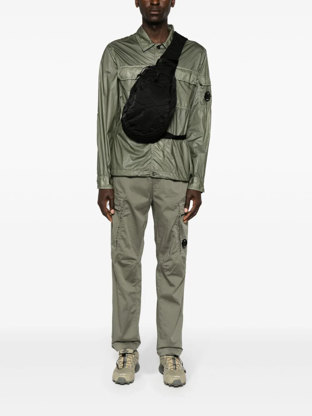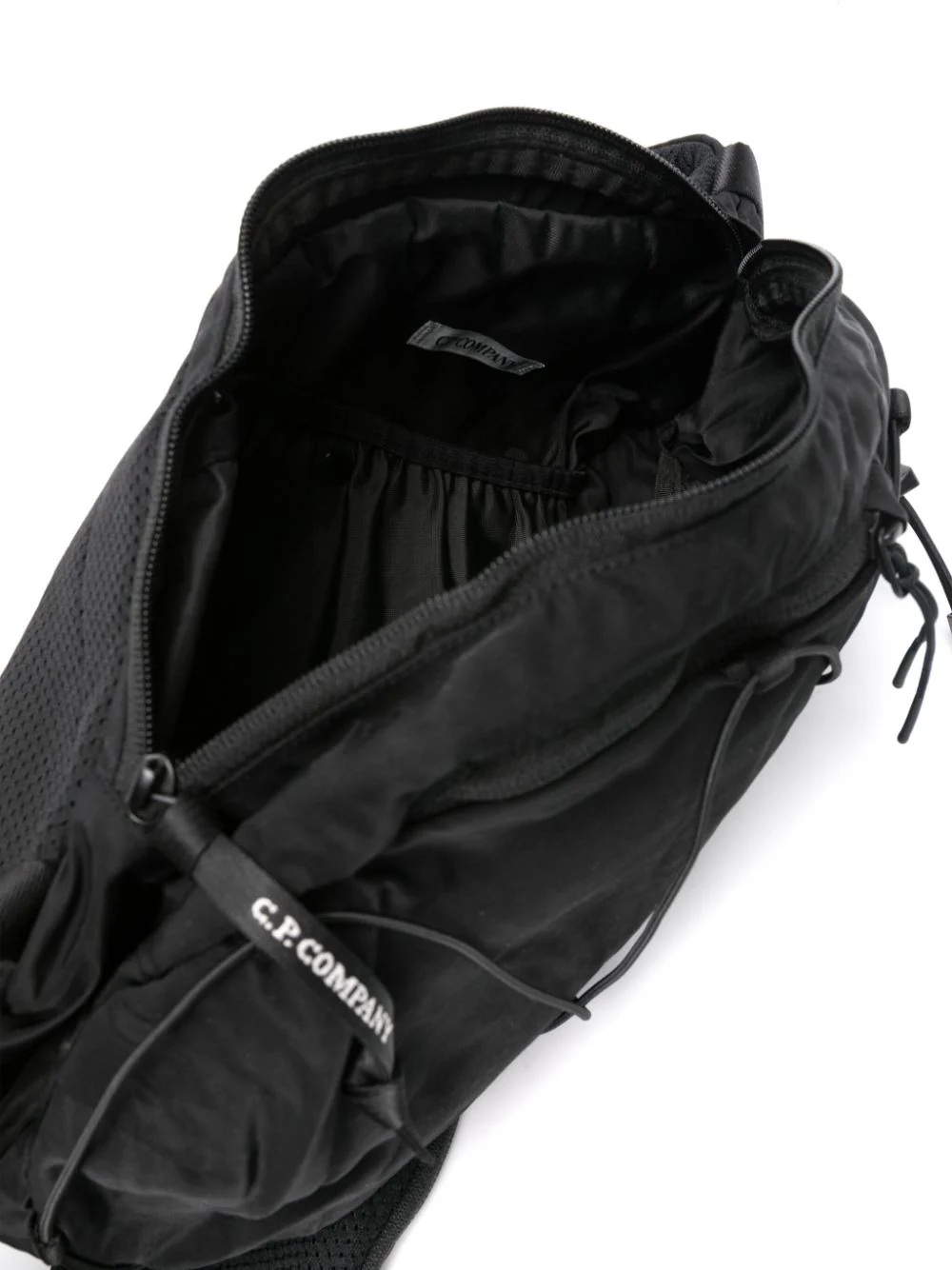 Ce sac fermé sur le devant présente une bride rembourrée réglable, des compartiments zippés sécurisés et des cordons de serrage élastiques. Le détail en forme de verre de lunette C.P. COMPANY complète l’ensemble. Modèle confectionné en Nylon B, un tissu robuste et résistant à l’eau spécifiquement étudié pour la coloration des vêtements, qui confère aux couleurs profondeur et intensité.