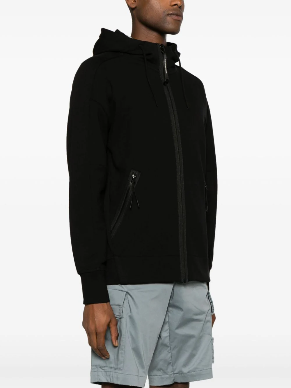 CP Company Sweat à capuche zippé Diagonal Raised Fleece Goggle Black
