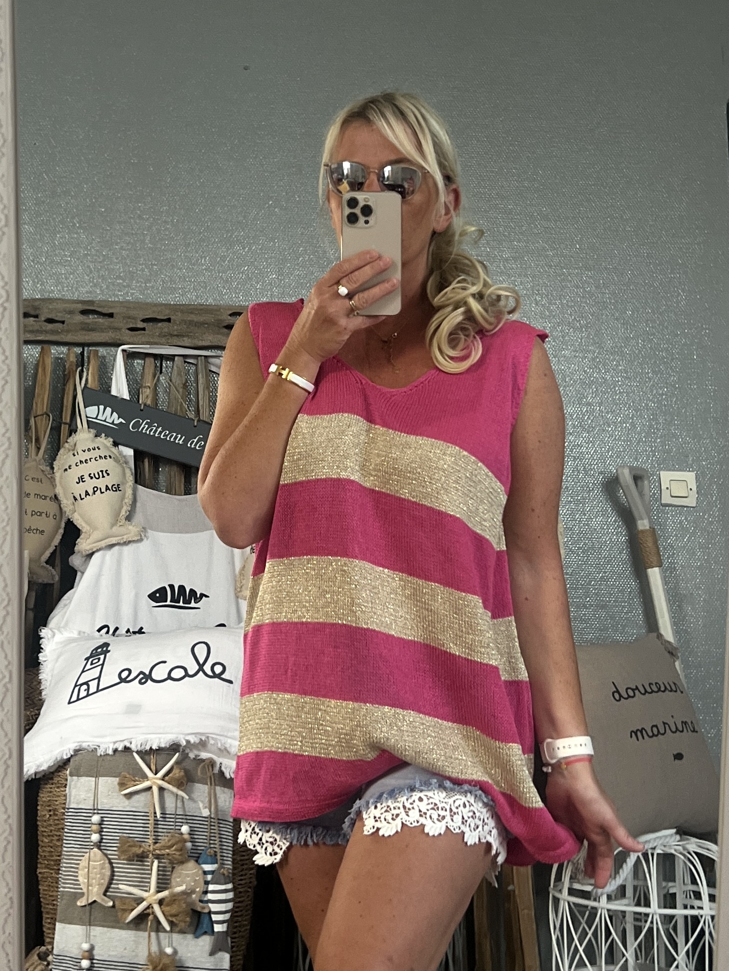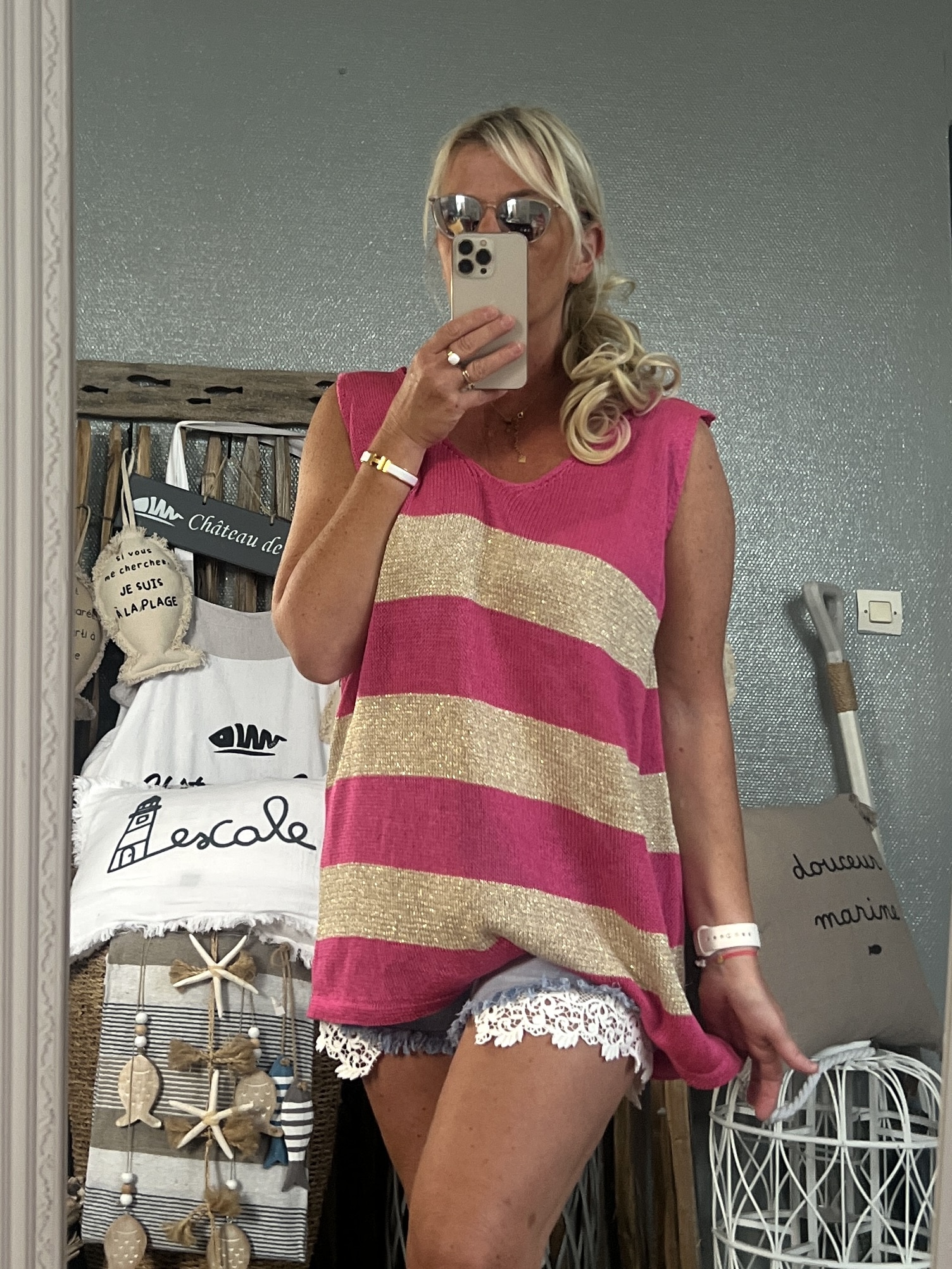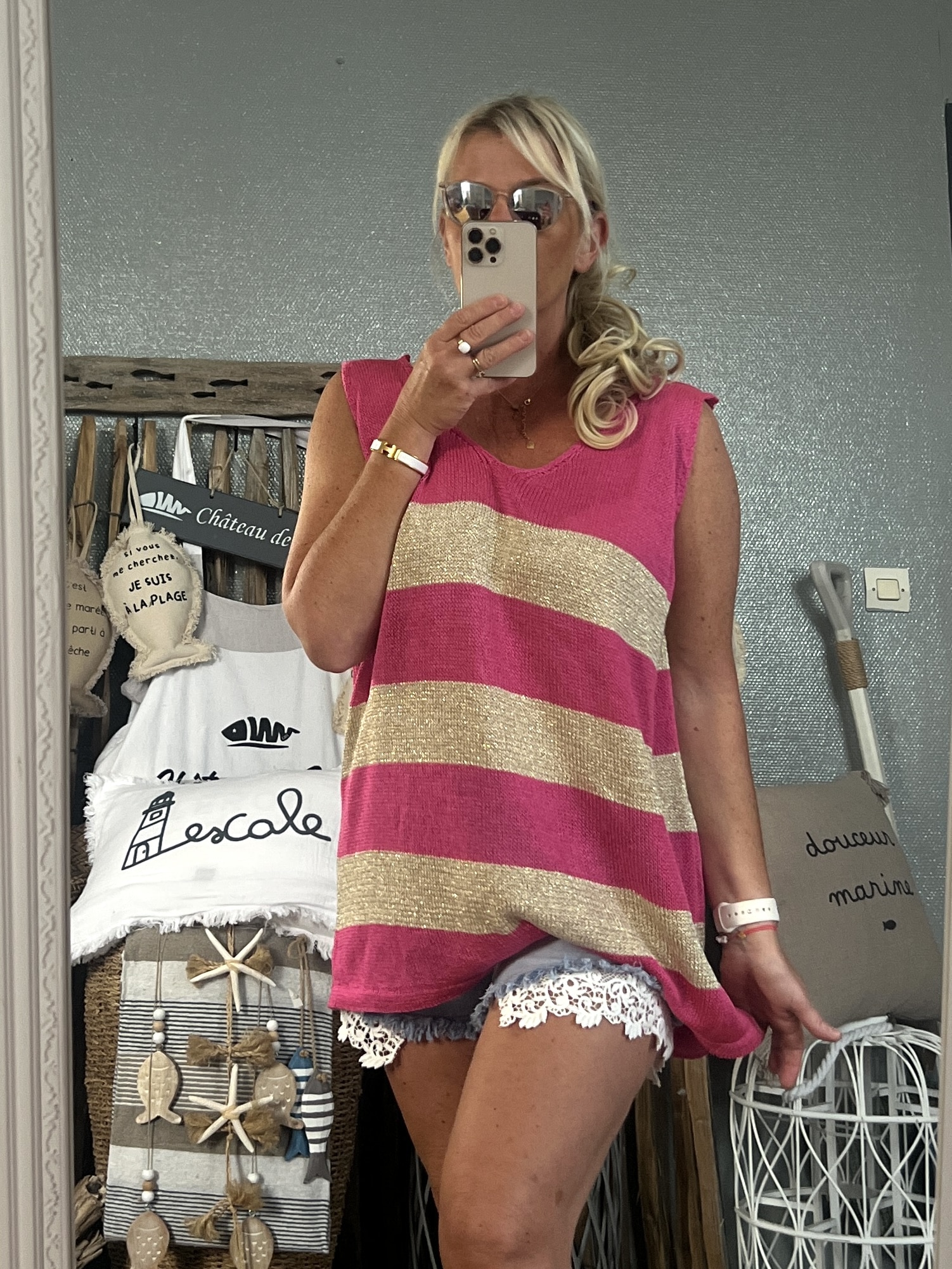 Débardeur coton viscose lurex taille unique 44/50