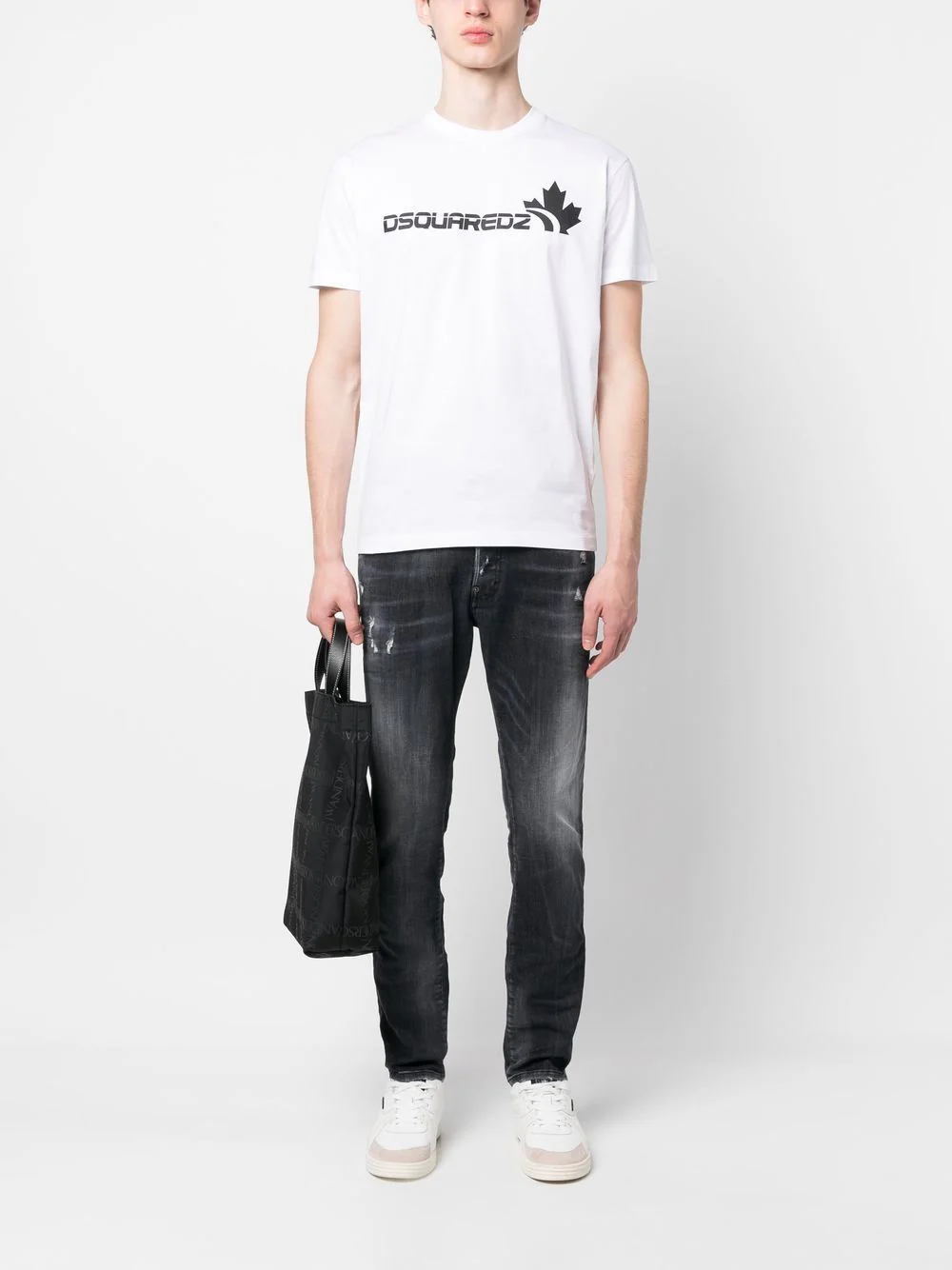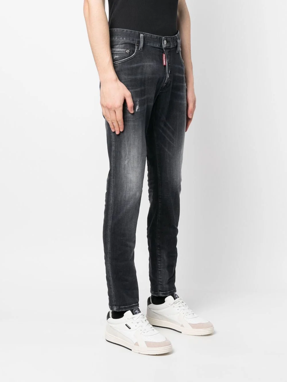 Noir, denim délavé, coton stretch, fermeture à zip et boutons sur le devant, cinq poches classiques, coupe slim. Extérieur : Coton 92%, Polyester 6%, Élasthanne 2% Doublure : Polyester 65%, Coton 35% Lavage en machine Le mannequin mesure 1,91 m et porte une taille 50 Les jumeaux canadiens Dean et Dan Caten sont les créateurs […]