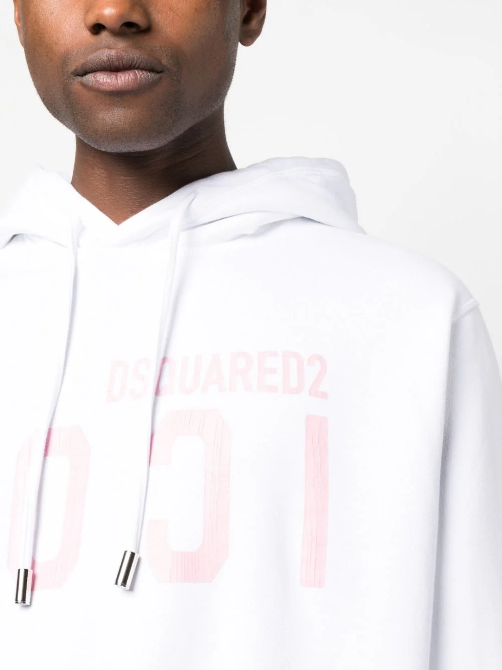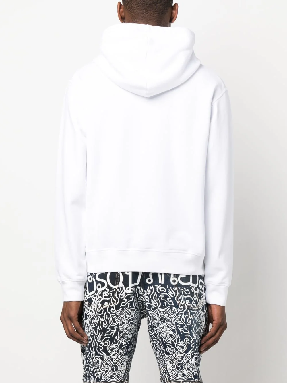 Sweat à capuche imprimé logo icône de DSQUARED2 avec blanc, coton, logo imprimé à l’avant, capuche à cordon, manches longues et ourlet droit.