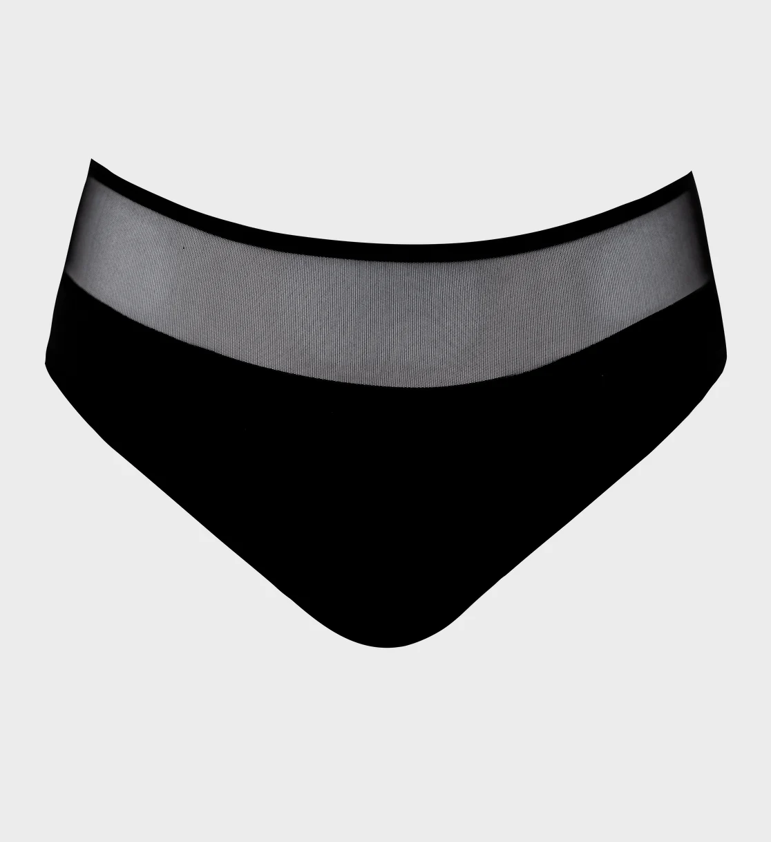 Cette culotte menstruelle flux moyen possède une coupe à la fois féminine et englobante. La taille n’est ni basse ni haute. La ceinture en tulle apporte une élégance certaine à l’ensemble. Cette culotte menstruelle est simple et très esthétique. Tu auras, sans aucun doute, beaucoup de plaisir à la porter.