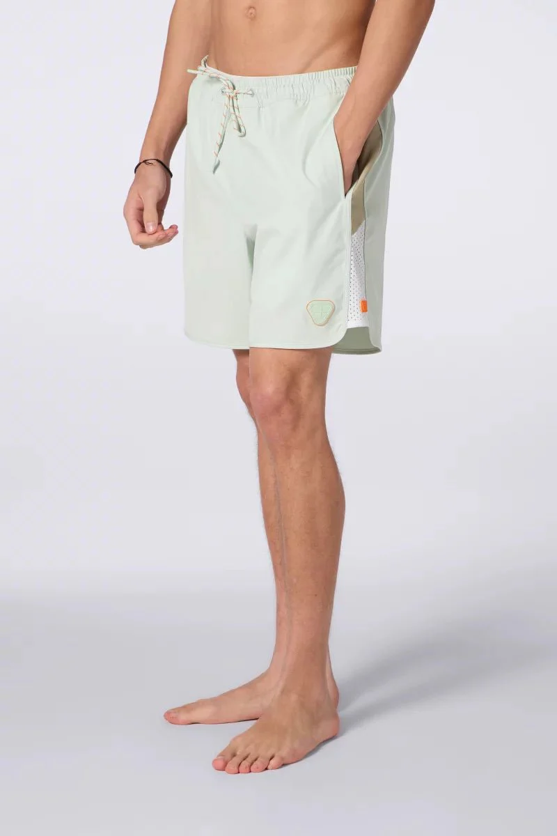 Le short de bain GERTRUDE incarne l’alliance parfaite entre style et fonctionnalité pour vos journées à l’eau. Conçu en nylon stretch haute performance, il offre une coupe courte optimisée pour la mobilité et le confort maximal. La taille élastiquée, réglable via un cordon de serrage bicolore, garantit un ajustement personnalisé et sécurisé. Les bandes contrastantes latérales en mousse granite créent une structure visuelle dynamique, tandis que le patch en silicone discret apposé en bas de jambe signe la pièce avec subtilité. Séchage rapide et matière agréable au toucher, ce short combine praticité et élégance pour les amateurs de baignade exigeants.