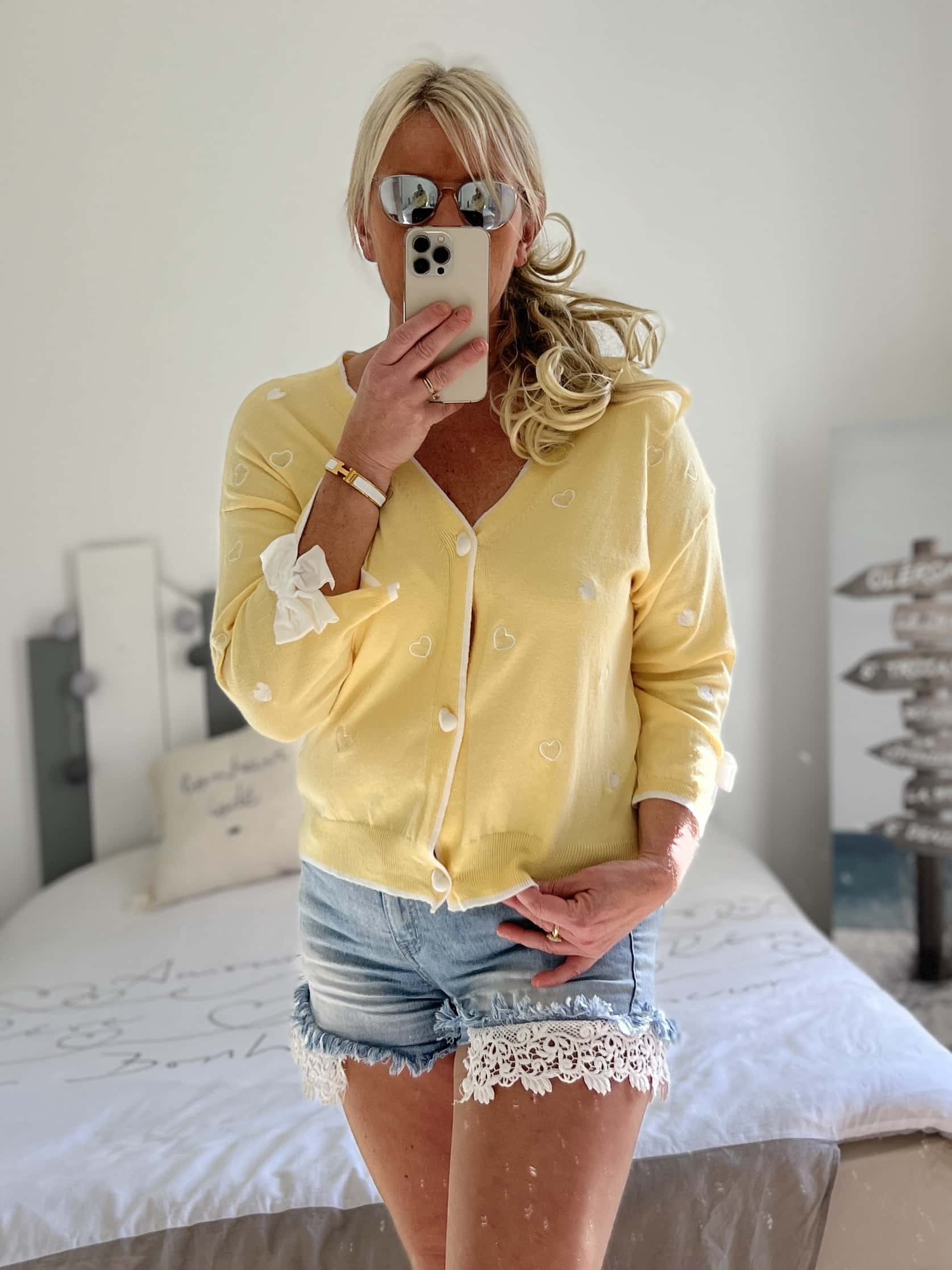 Gilet cœurs noeuds jaune