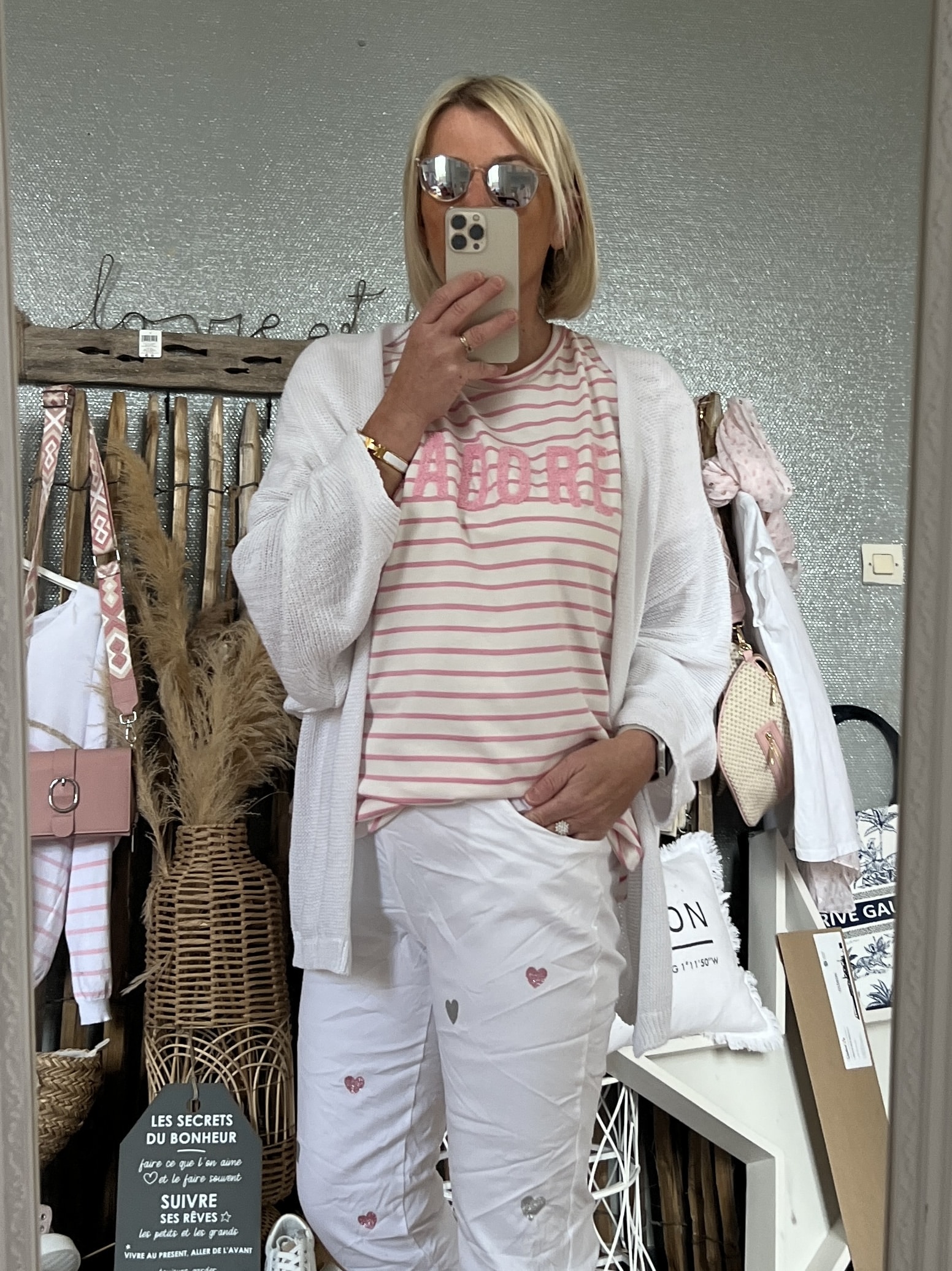 Gilet j’adore blanc doré
