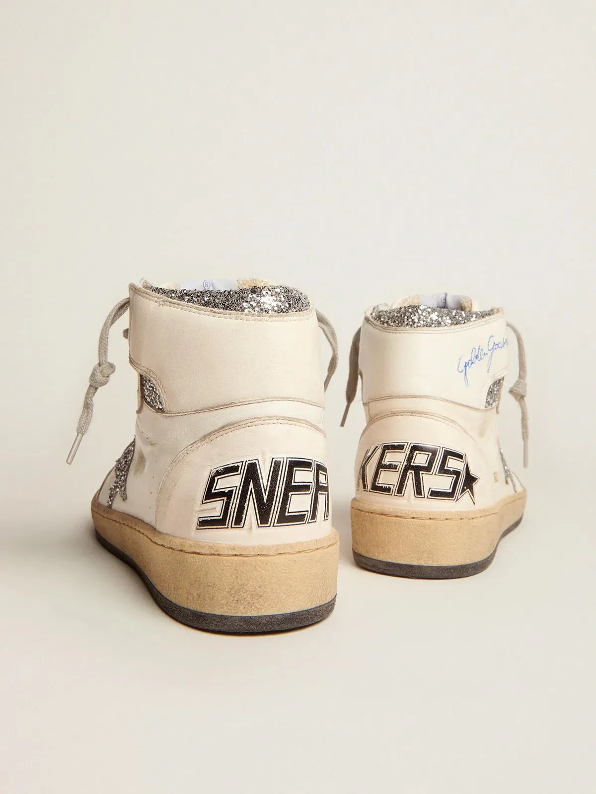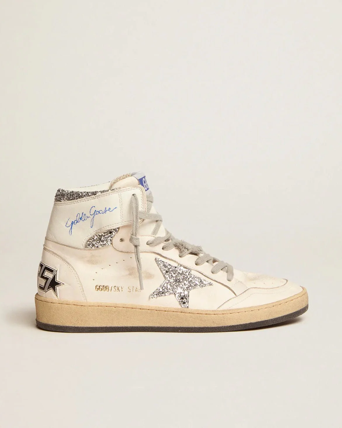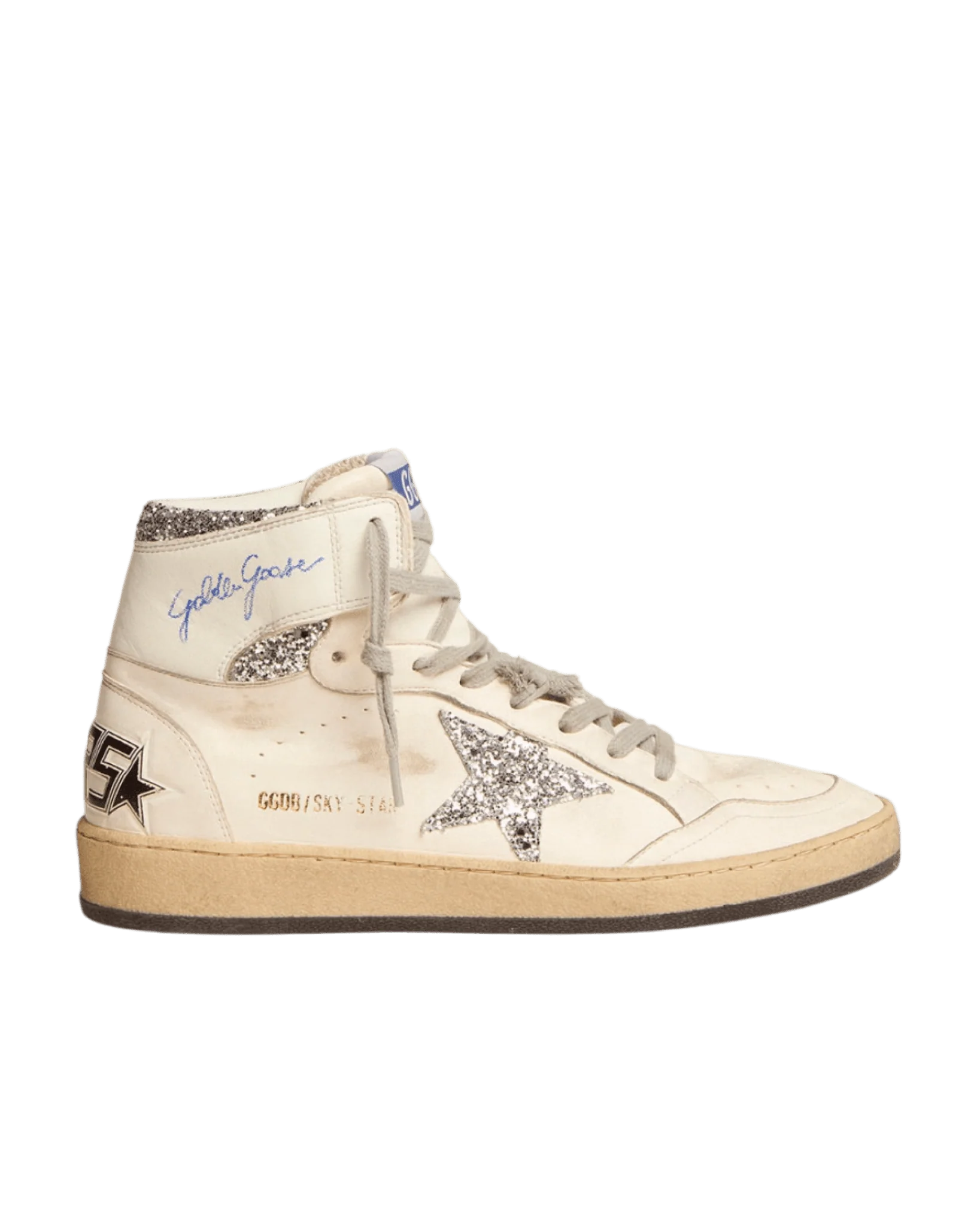 GOLDEN GOOSE – Sky-Star femme avec signature sur la cheville et empiècements argentés