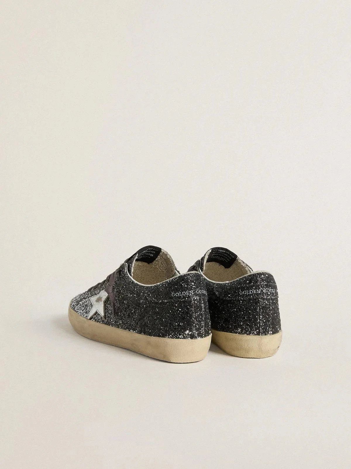 GOLDEN GOOSE – Super Star pour femme avec tige à paillettes et étoile en cuir lamé argentés
