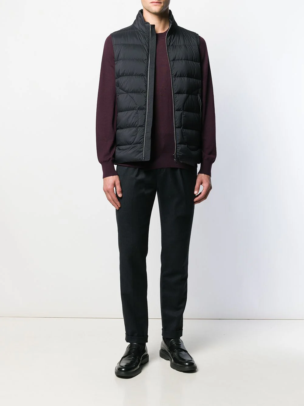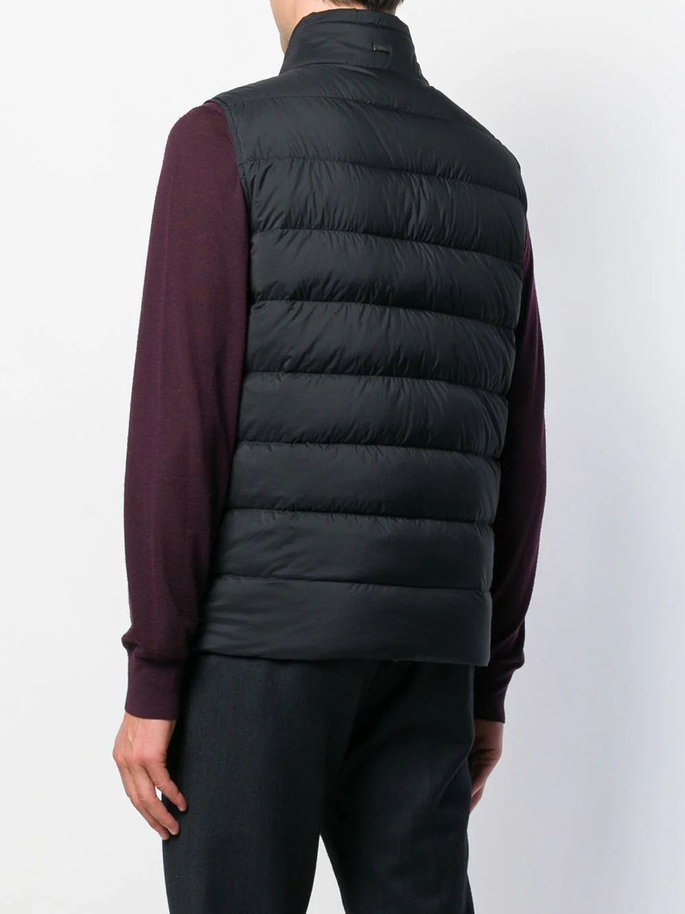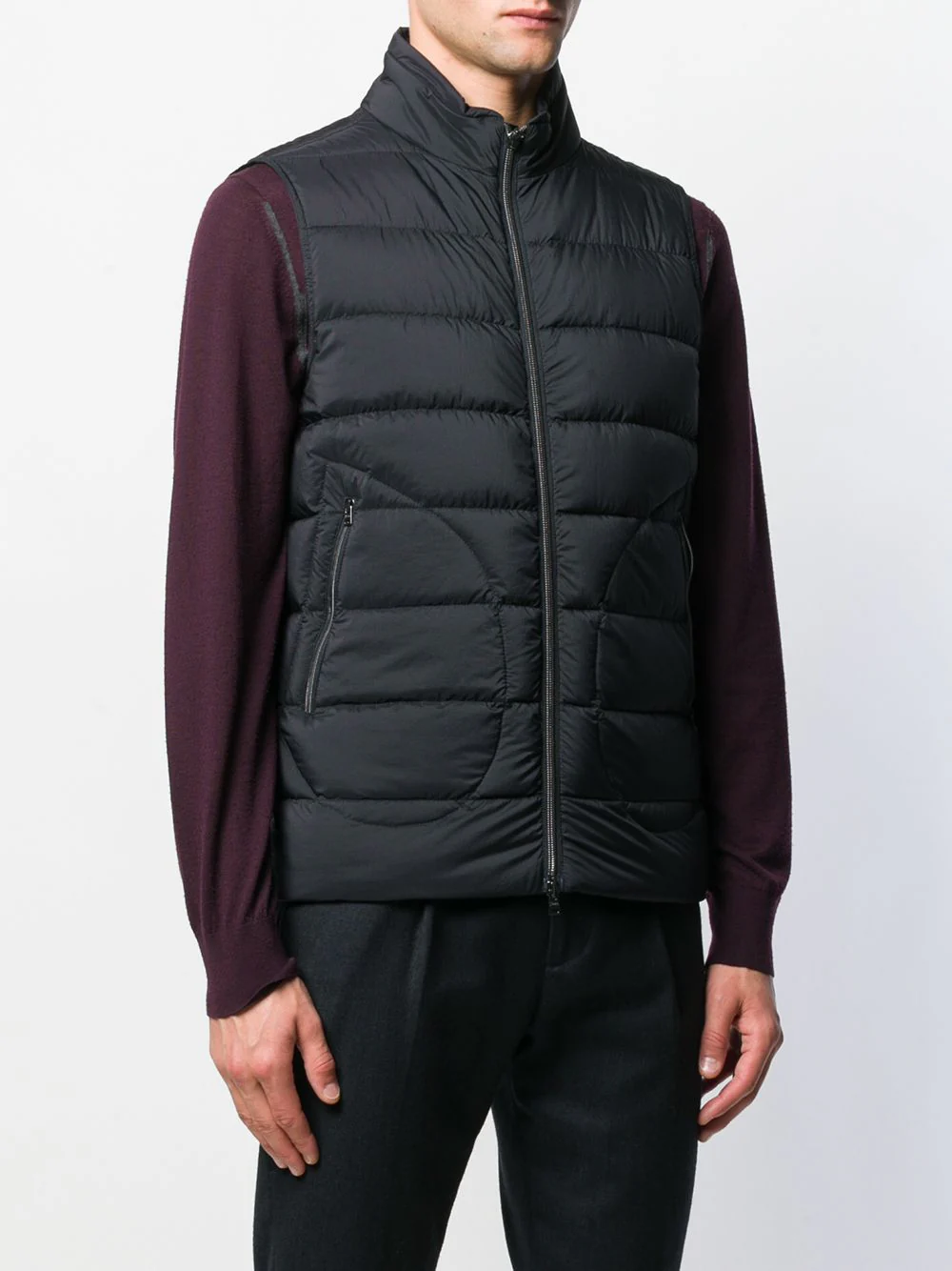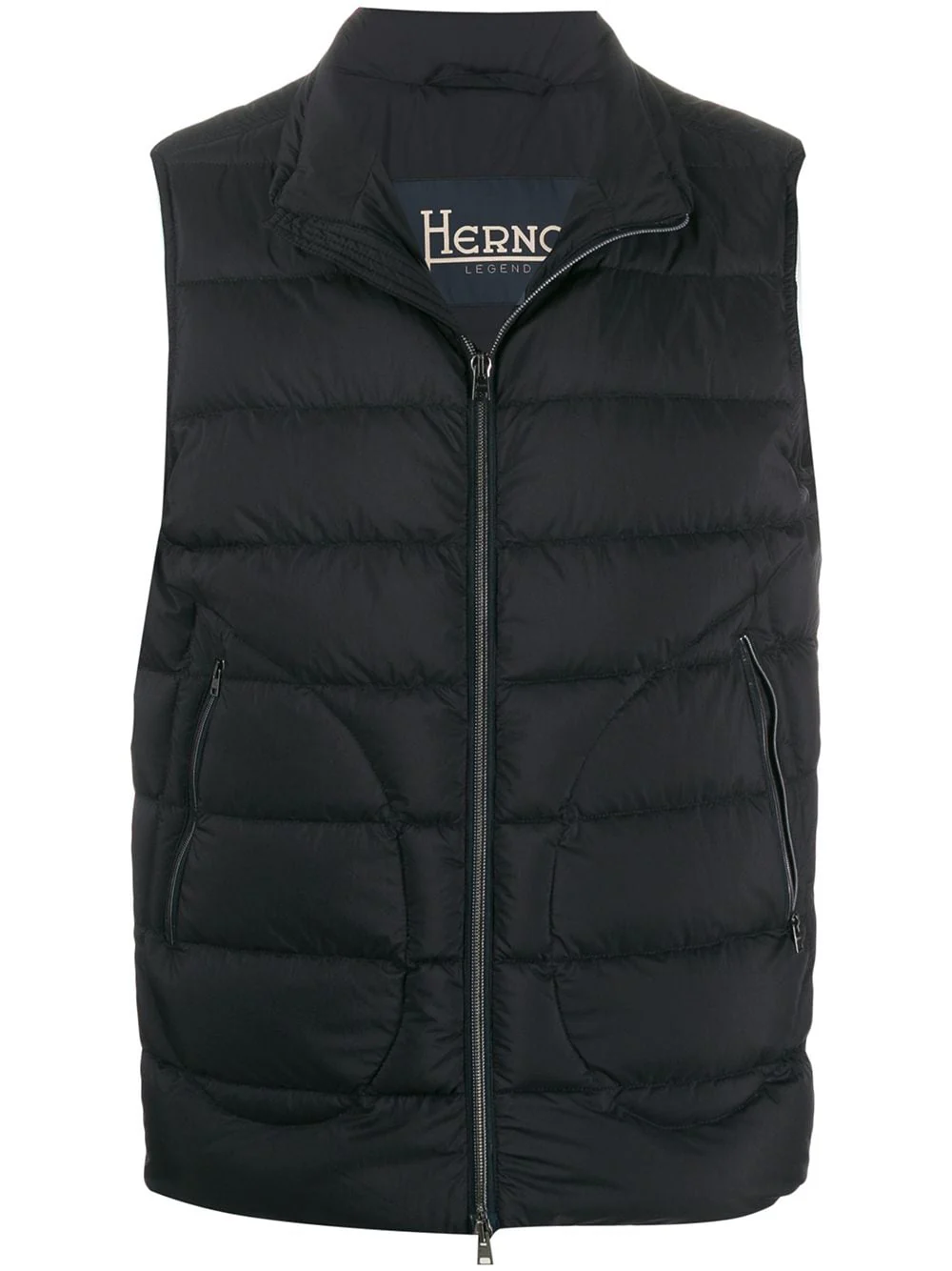 Gilet sans manches zippé Herno avec fermeture zippée devant, un design sans manches et effet matelassé. Couleur : noir.