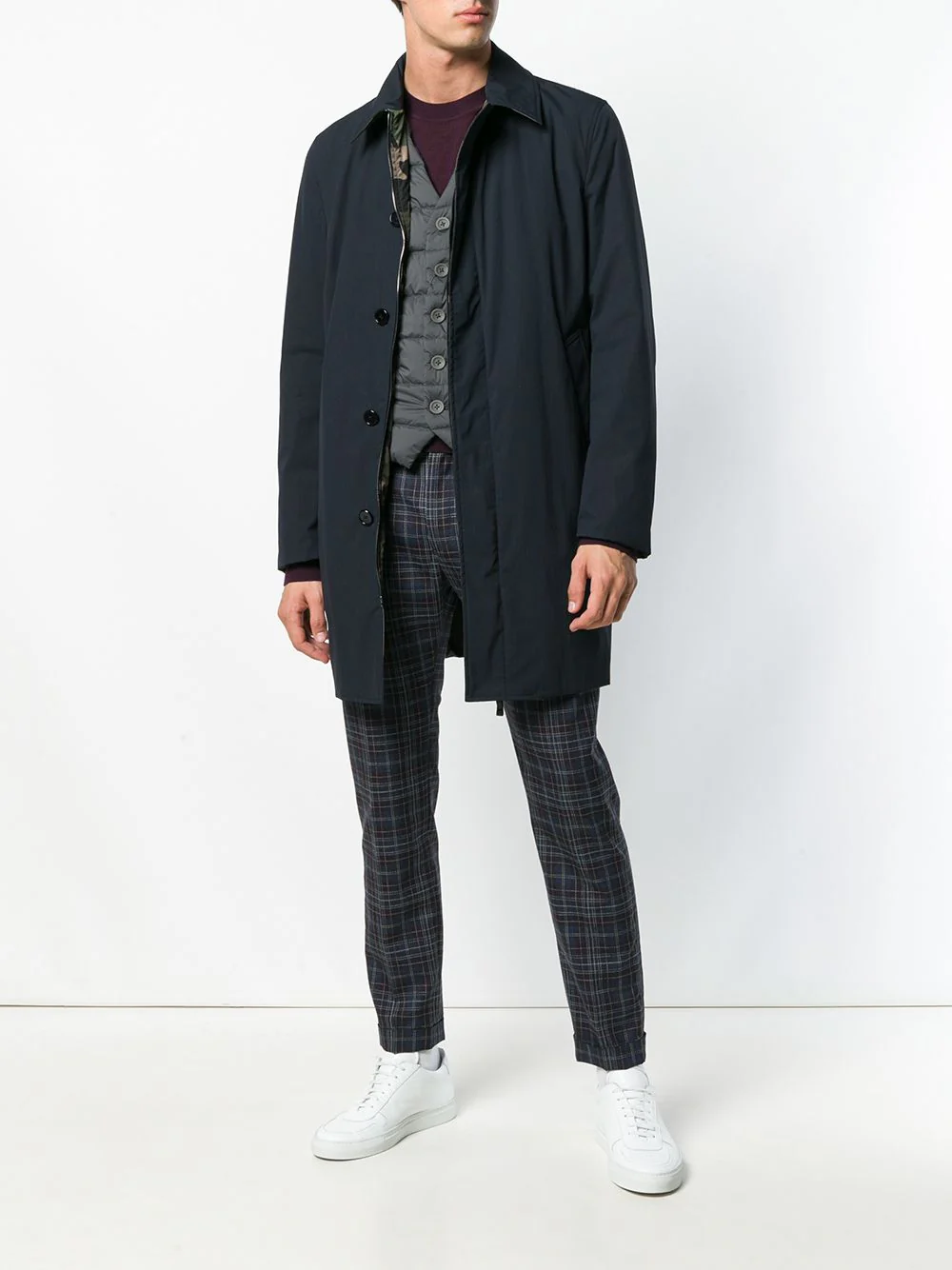 Gilet gris à design matelassé Herno avec col v, un design sans manches, boutonnière, coupe slim, poches latérales et design matelassé. Doublure : polyamide 100%, plumes d’oie 90%, plume 10% Extérieur : polyamide 100%, acétate 65%, polyester 35% Nettoyage à sec uniquement Le mannequin mesure 1,86 m et porte une taille 48 ID de la […]