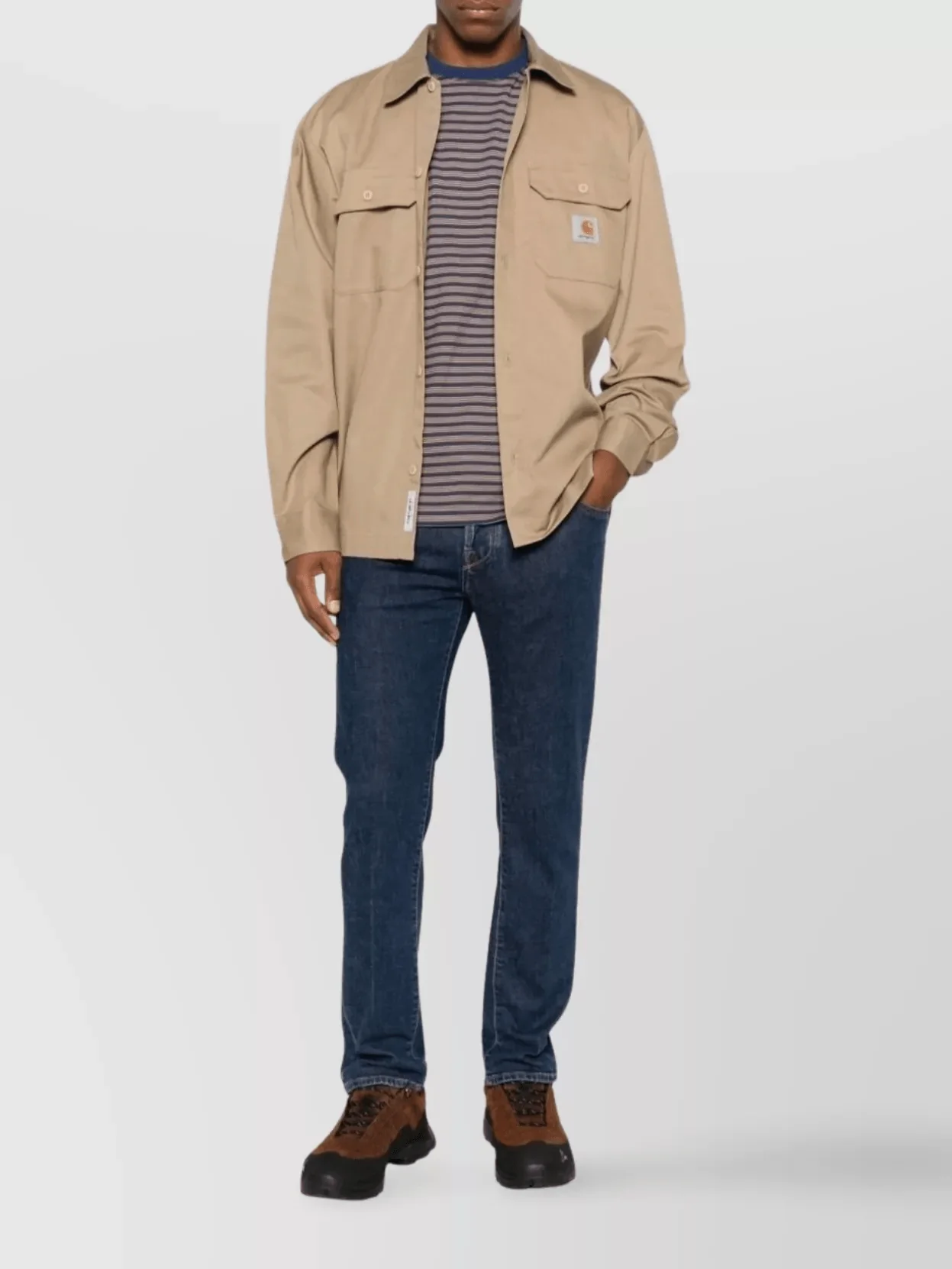 - Patte de boutonnage intérieure brodée du nom du pantalon et d’une citation du fondateur
