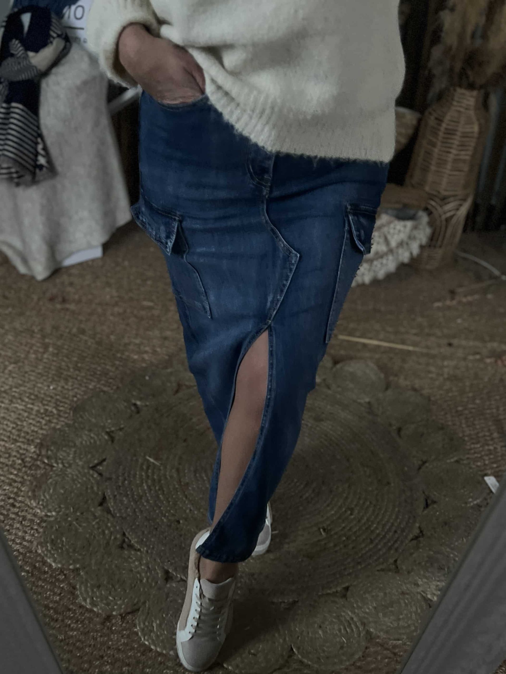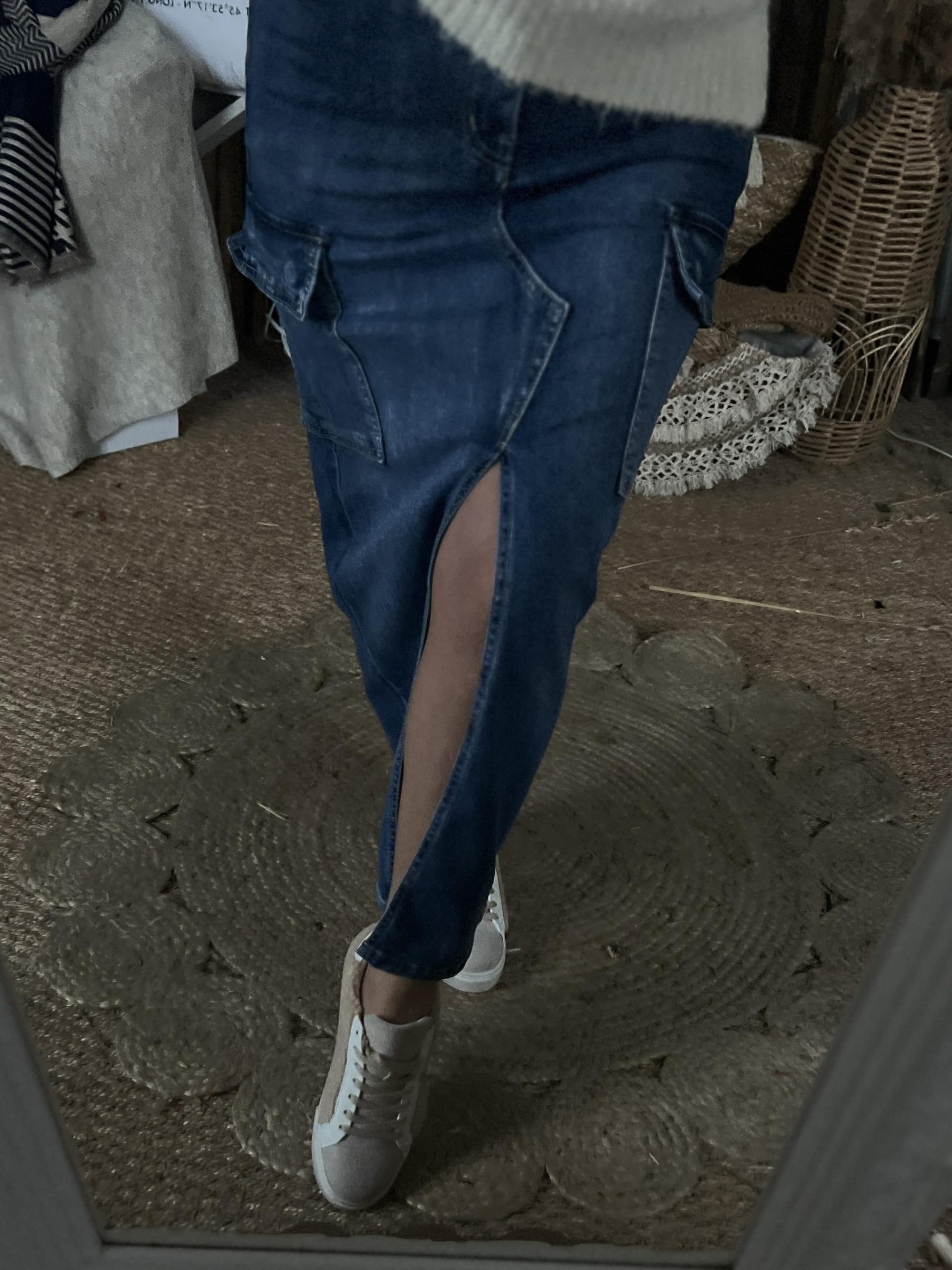 Jupe cargo jean longue