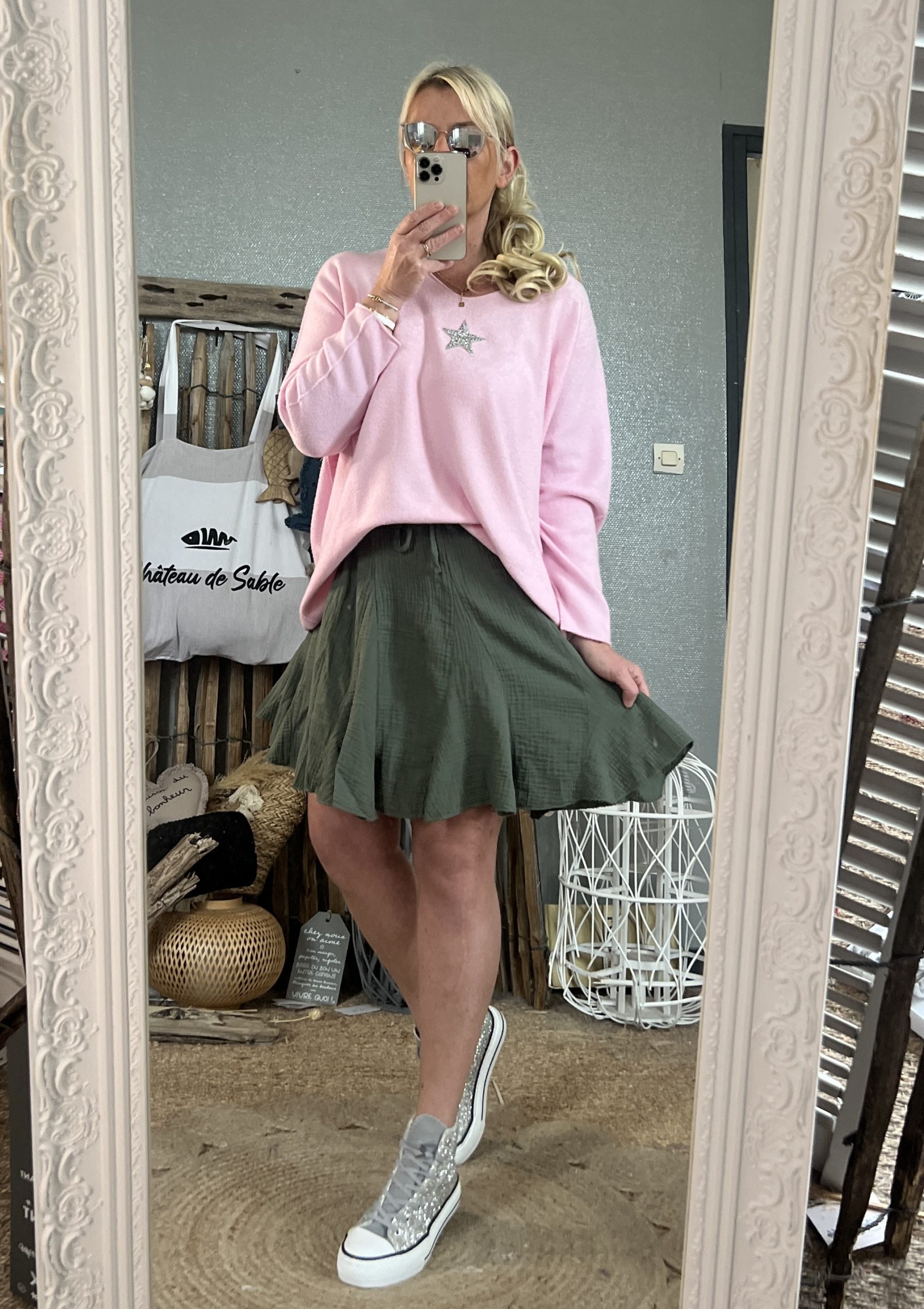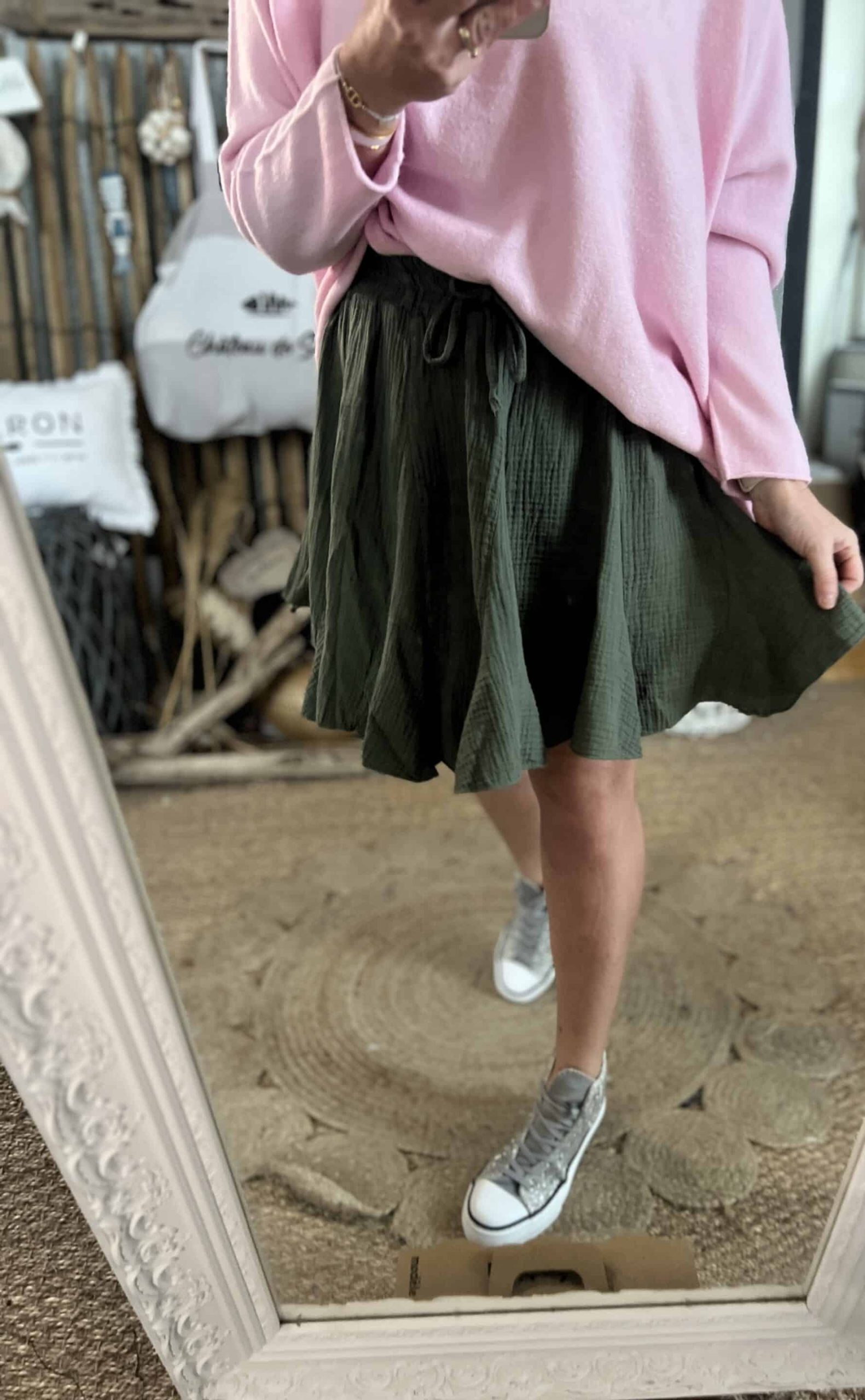 Jupe gaze de coton kaki