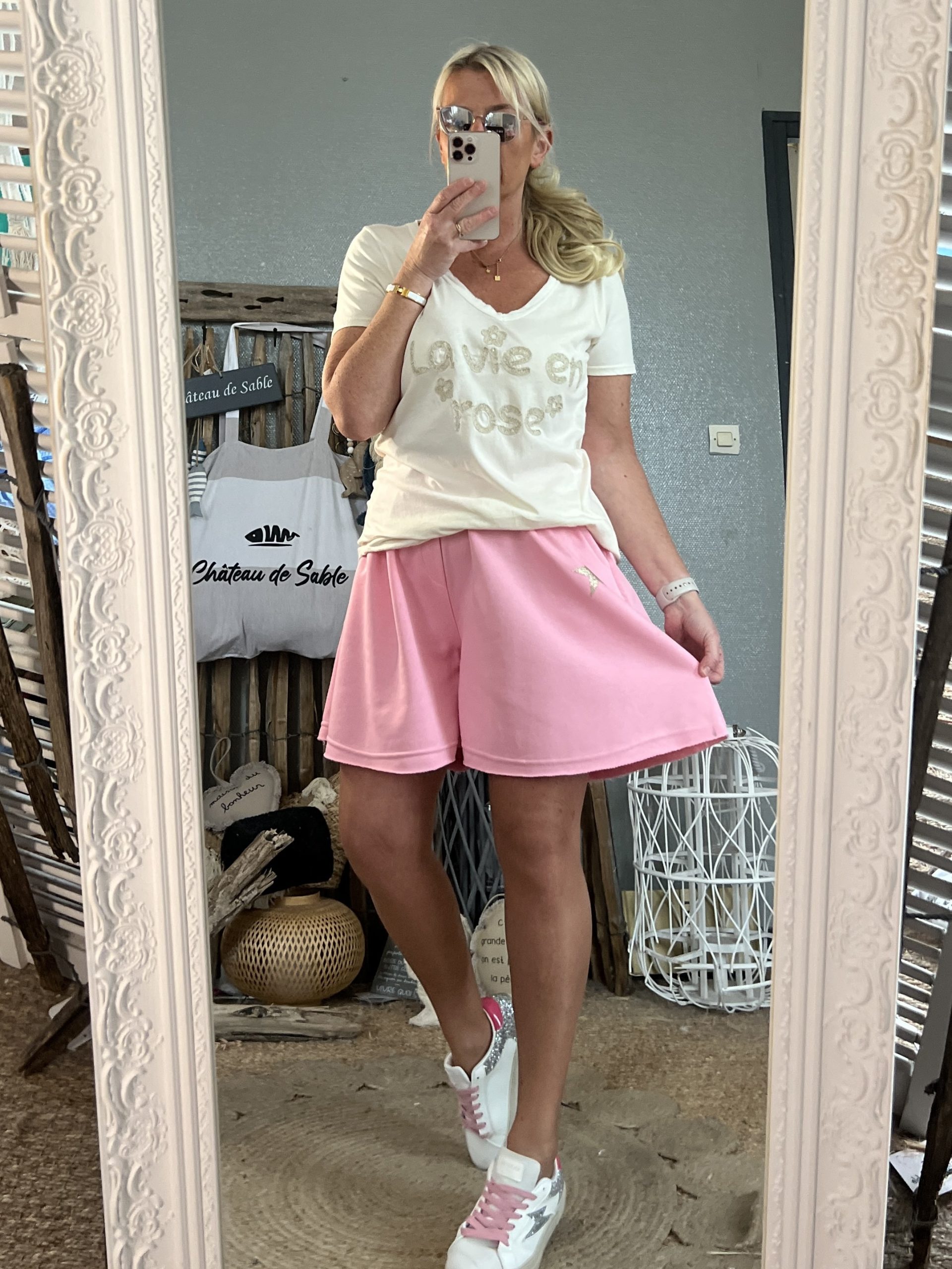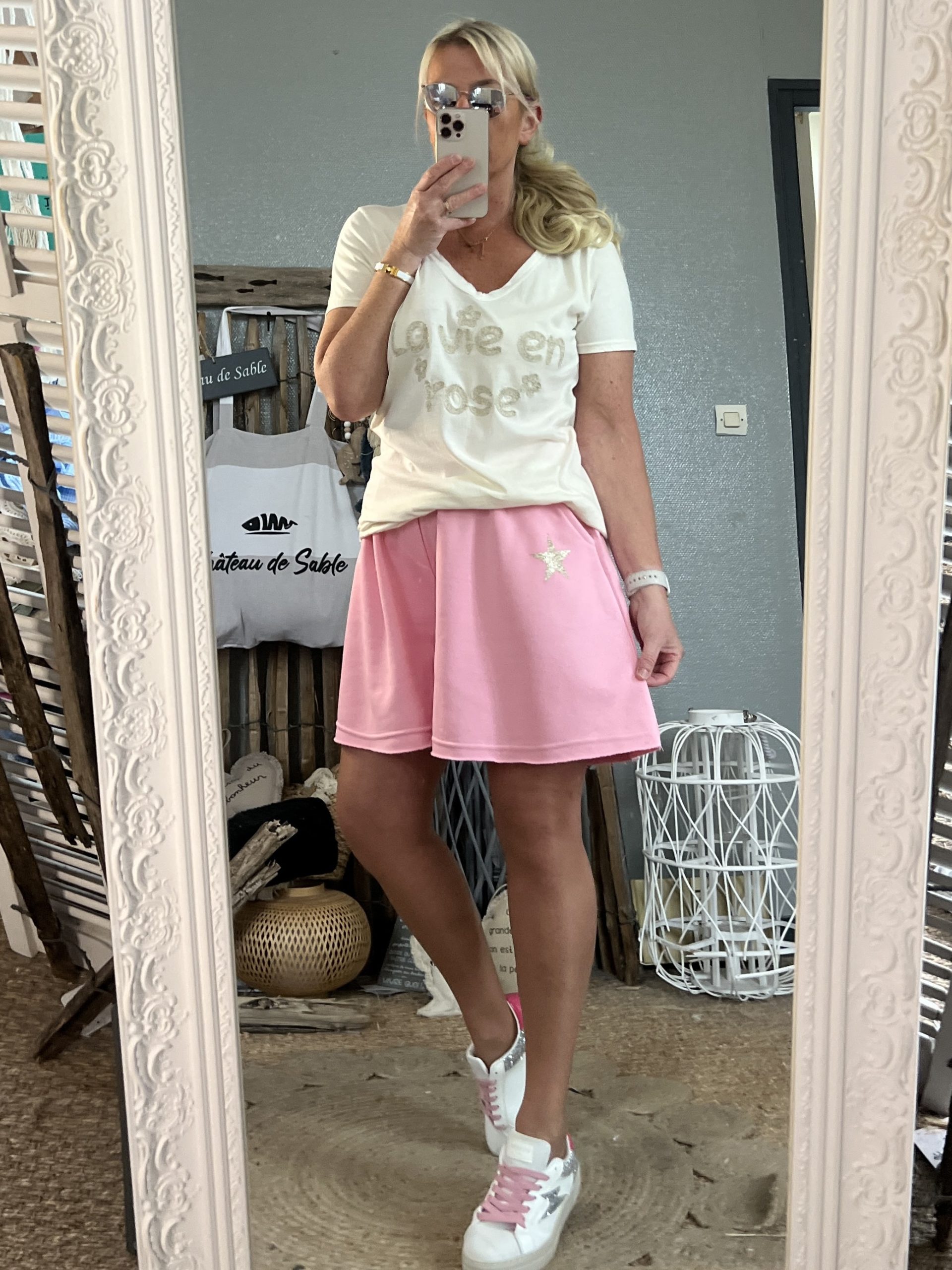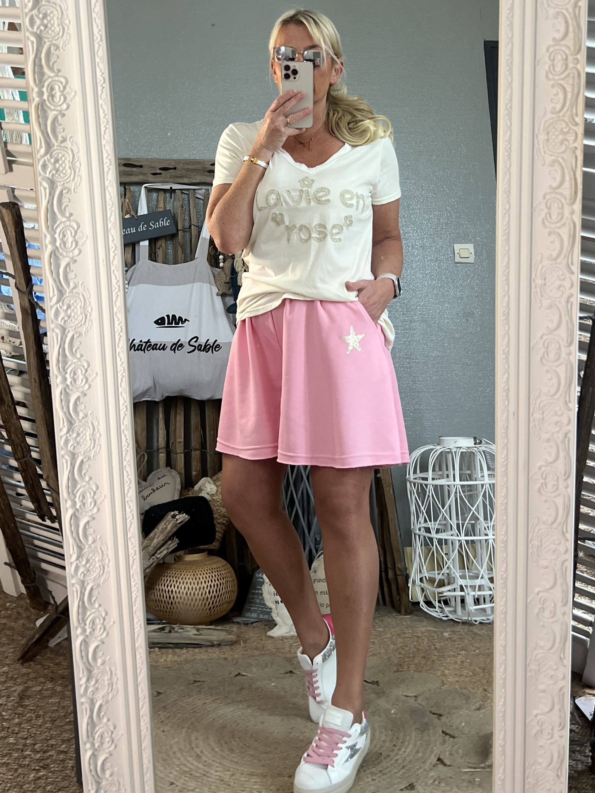Jupe short 95% coton 5% elasthane très fluide très agréable taille élastique 38/46 oversize pour 38 je mesure 1,60 50kgs