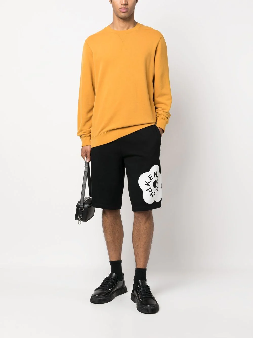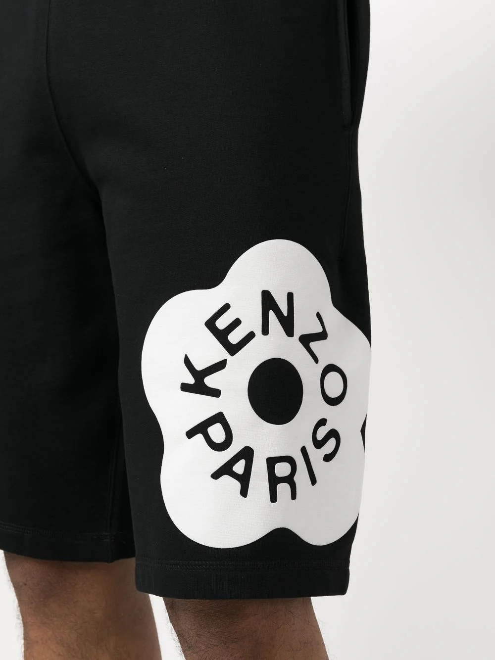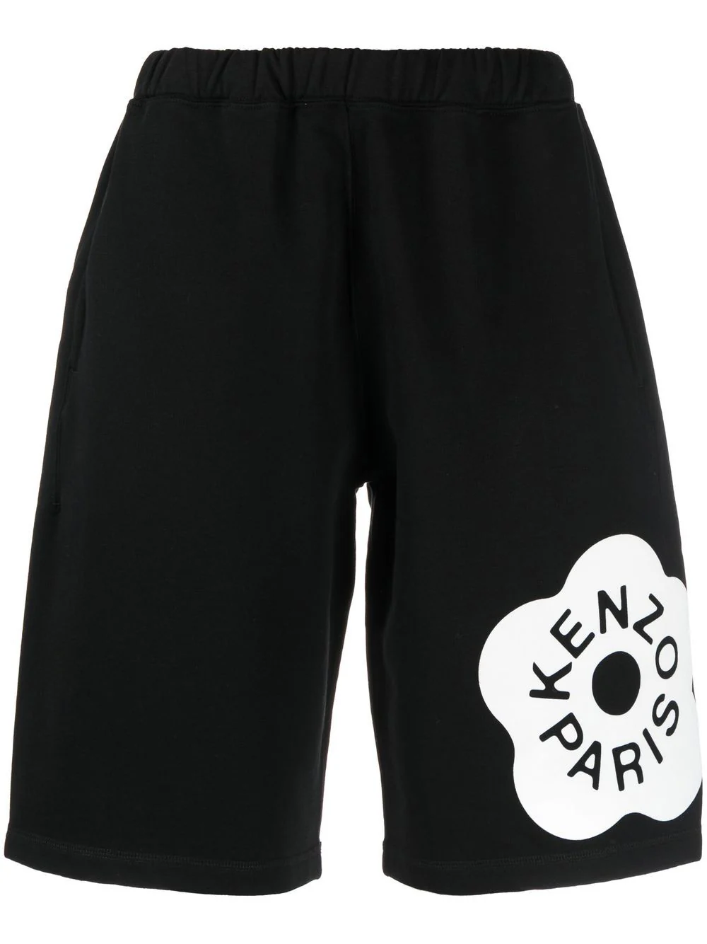 Noir, coton, imprimé à fleurs, patch logo sur l’arrière, logo imprimé sur la cuisse, ceinture élastique, poches latérales fendues, poche arrière plaquée, coupe droite.