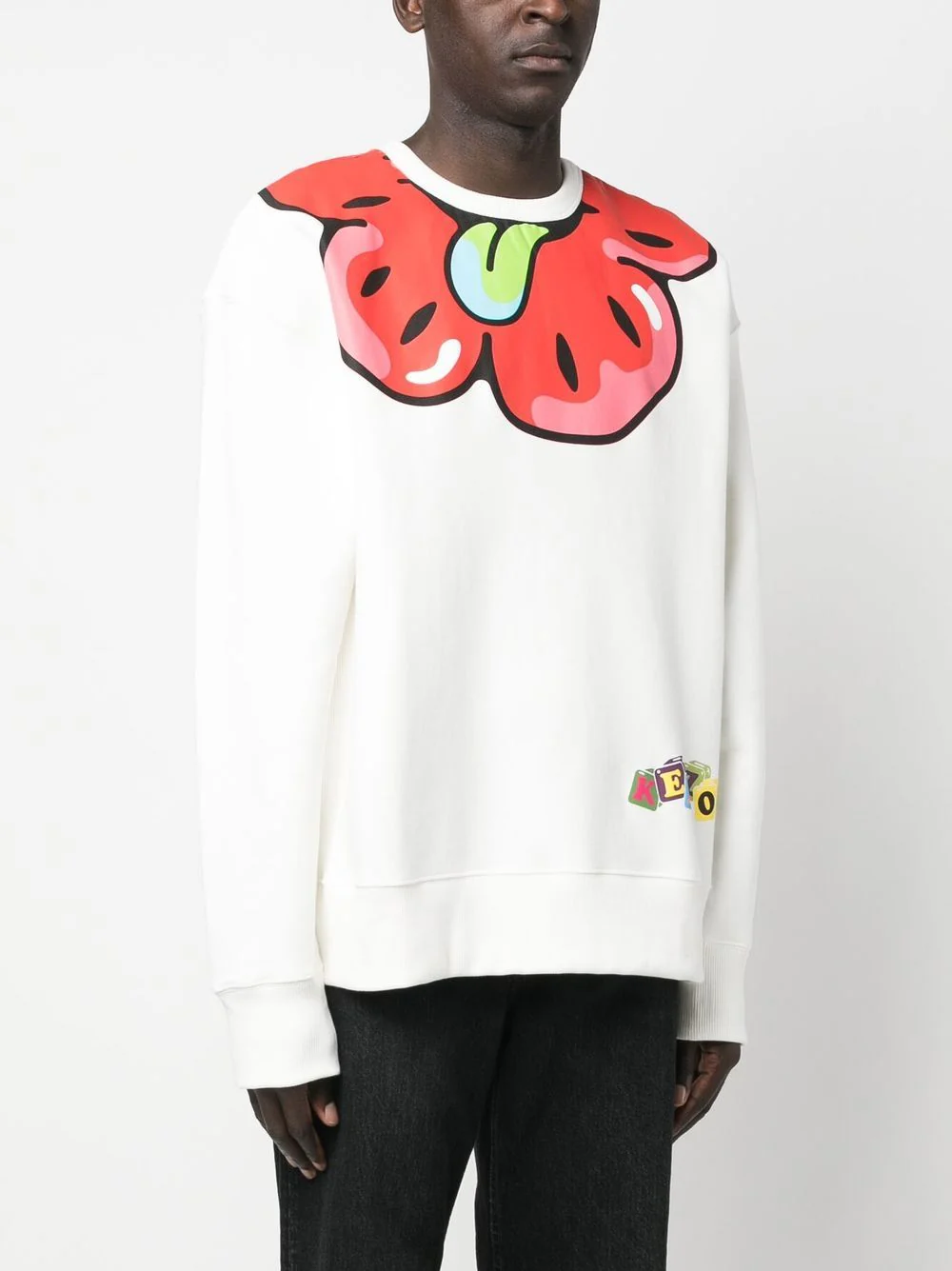 Motif Boke Flower signature, maille fine, encolure ras du cou, manches à poignets resserrés, manches longues.