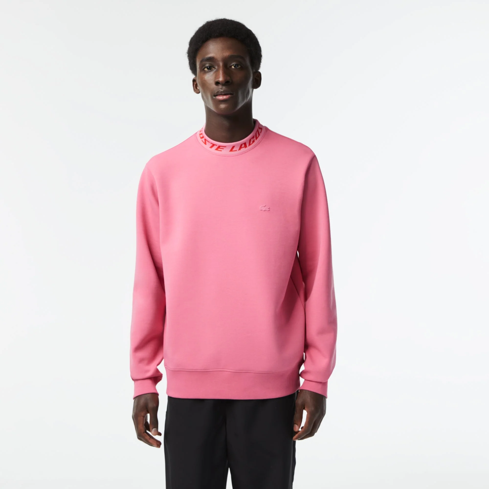 Lacoste Sweatshirt rose avec col siglé en double-face