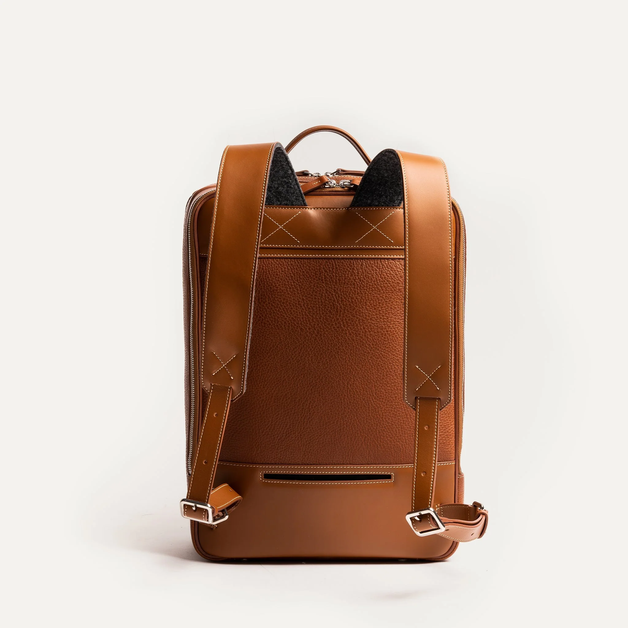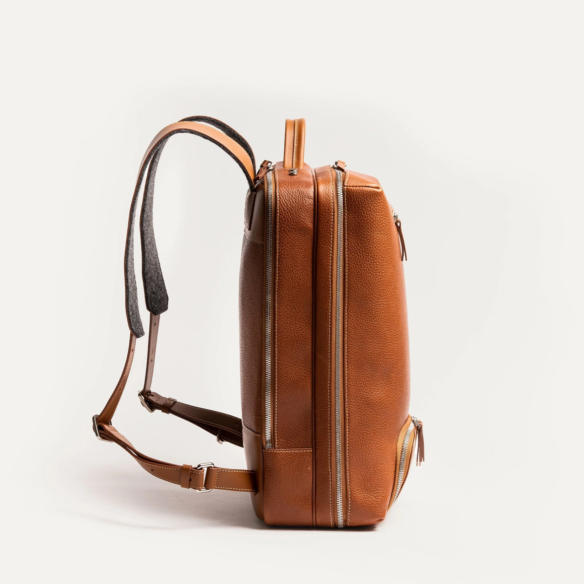 Ce sac à dos est réalisé entièrement en cuir, dans un cuir foulonné qui apporte un maximum de souplesse. Si le volume de rangement est le même que pour le sac ANTOINE, sa forme a légèrement été arrondie pour proposer des courbes plus marquées à l’avant comme à l’arrière du sac.