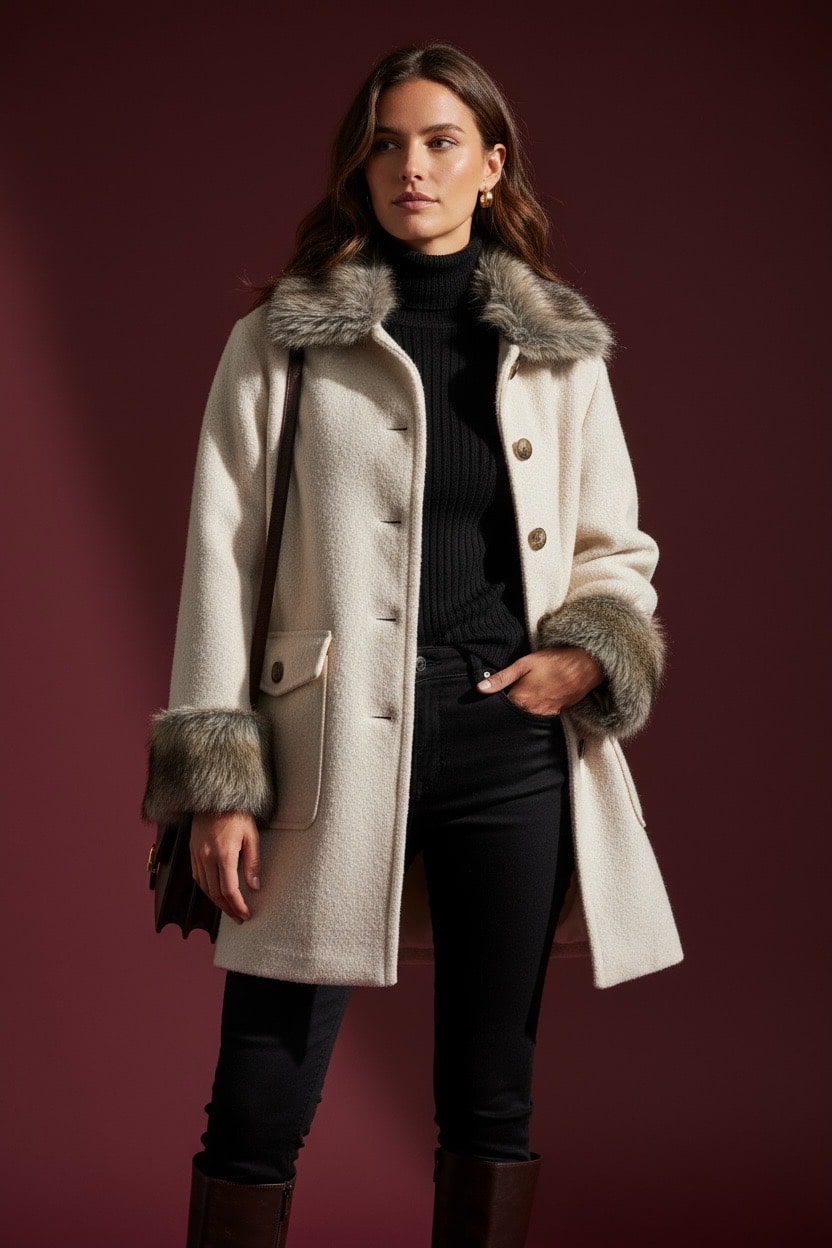 Portez-le avec un col roulé, un jean droit et des bottes hautes pour un look chic et cosy parfait pour la saison froide.