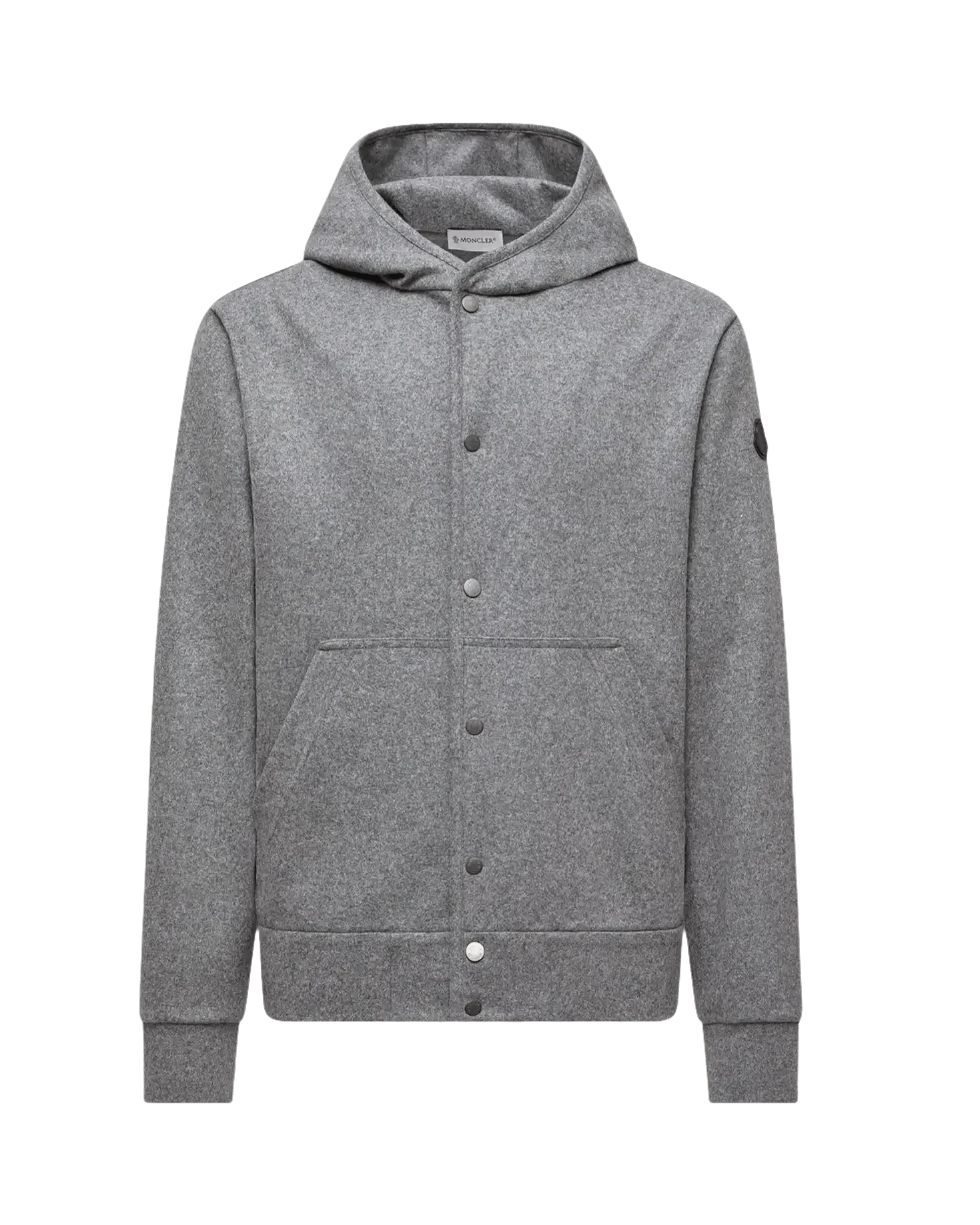 MONCLER – Sweat zippé À CAPUCHE en coton à logo noir charcoal